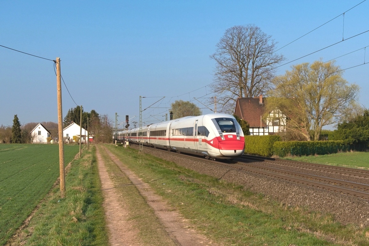 15.04.2021 bei Bückeburg (HBKB) Evesen als ICE 547/ICE 557 von Düsseldorf