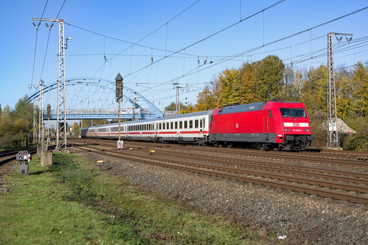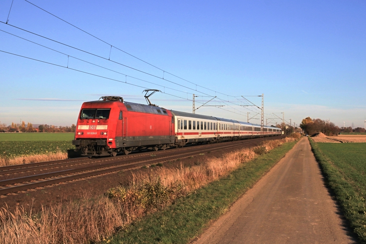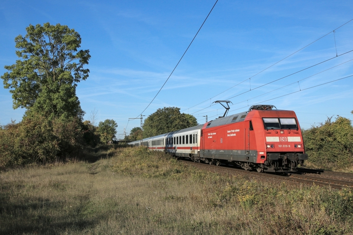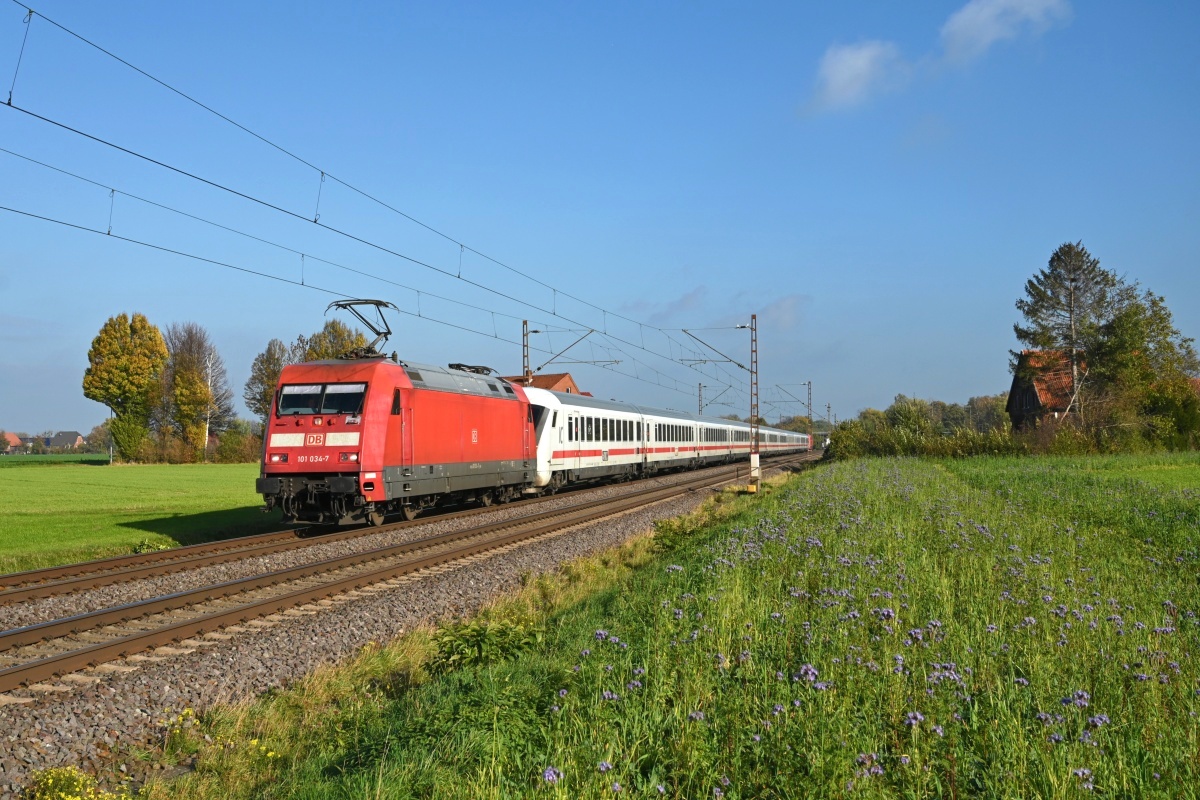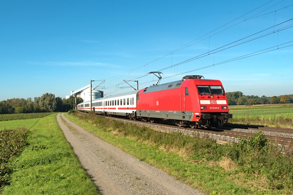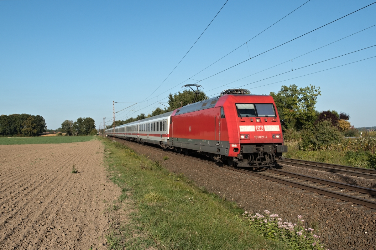 Dto. 101 038-8 am 09.10.2021 bei Wiehrte (HWIR) mit einem IC Rtg.