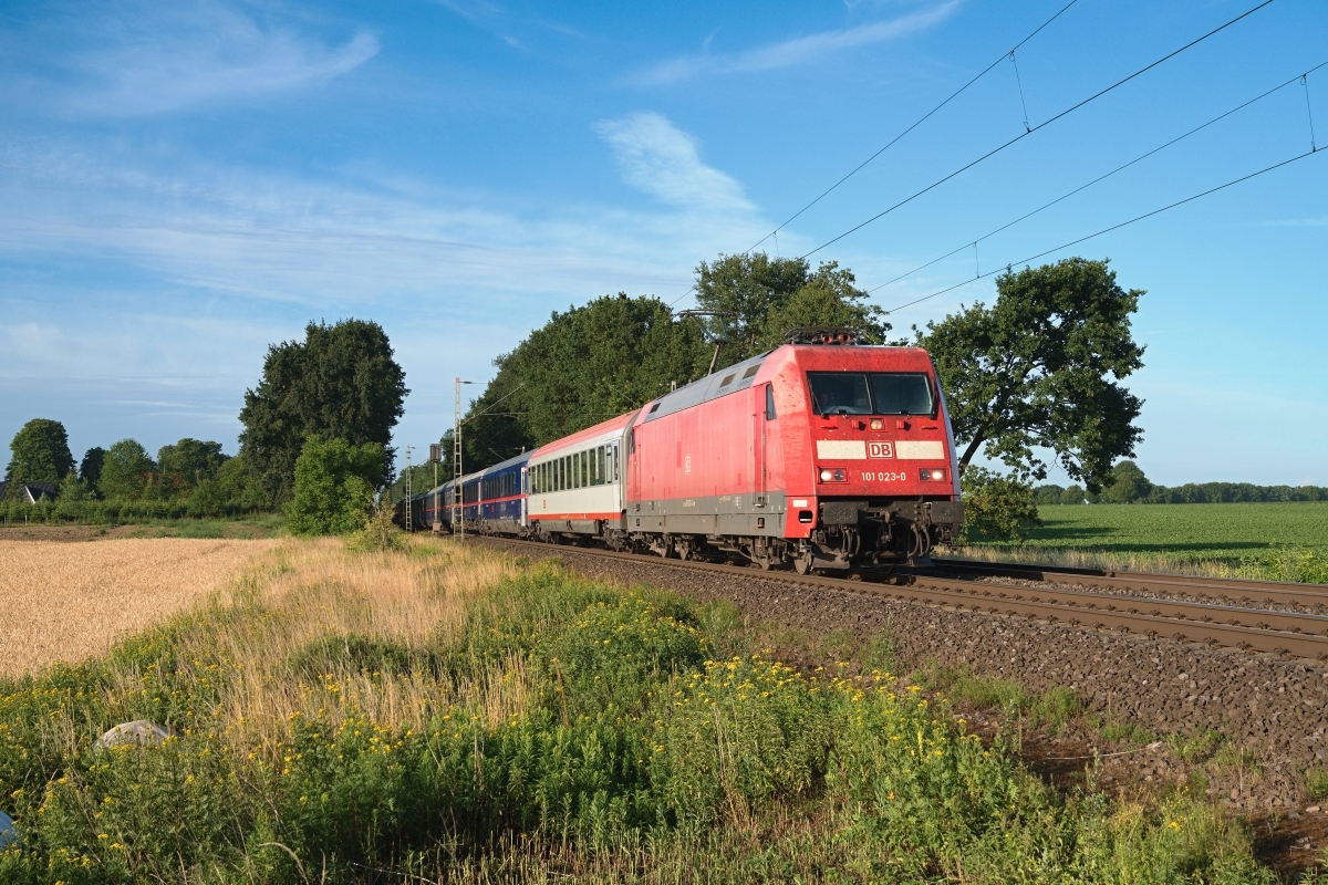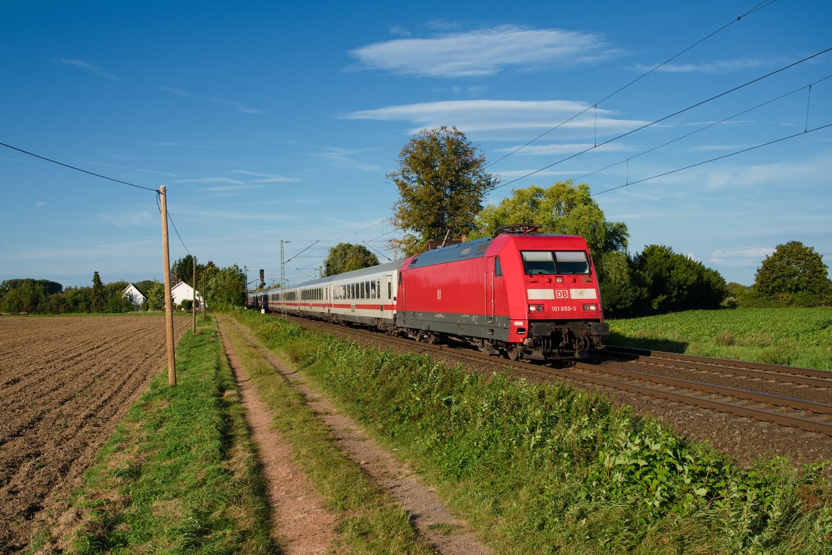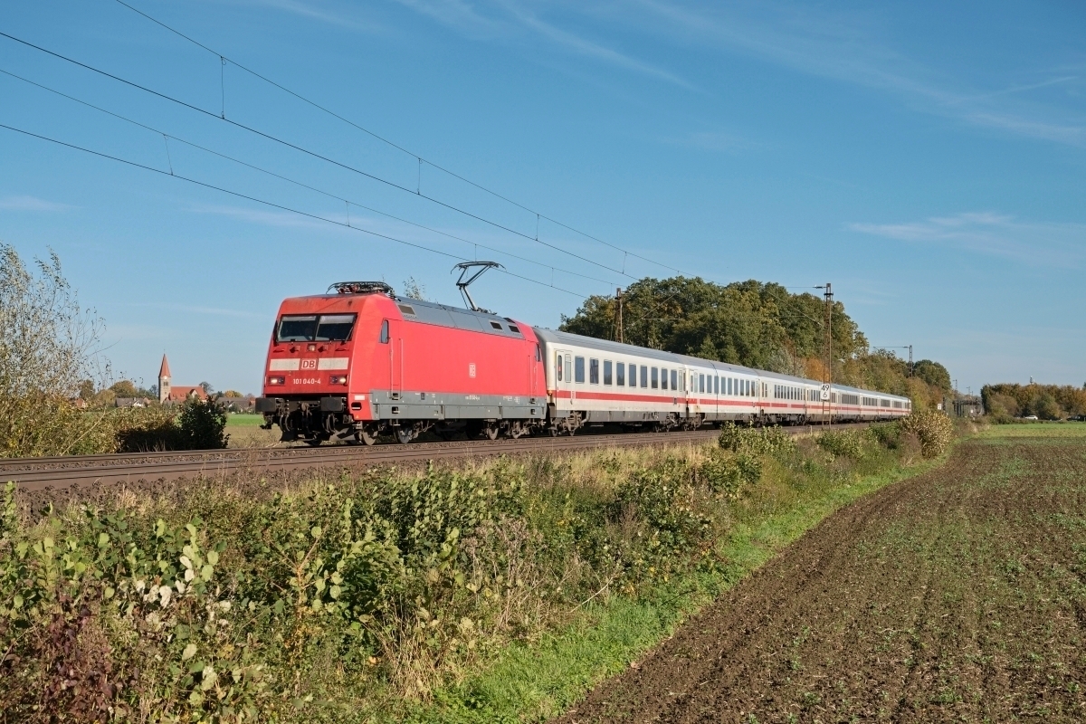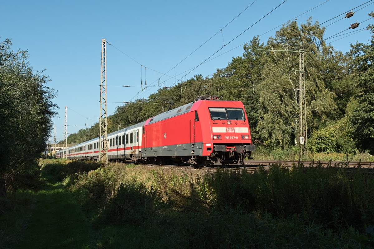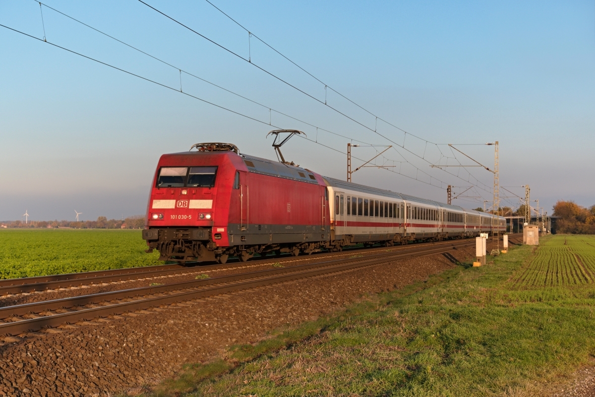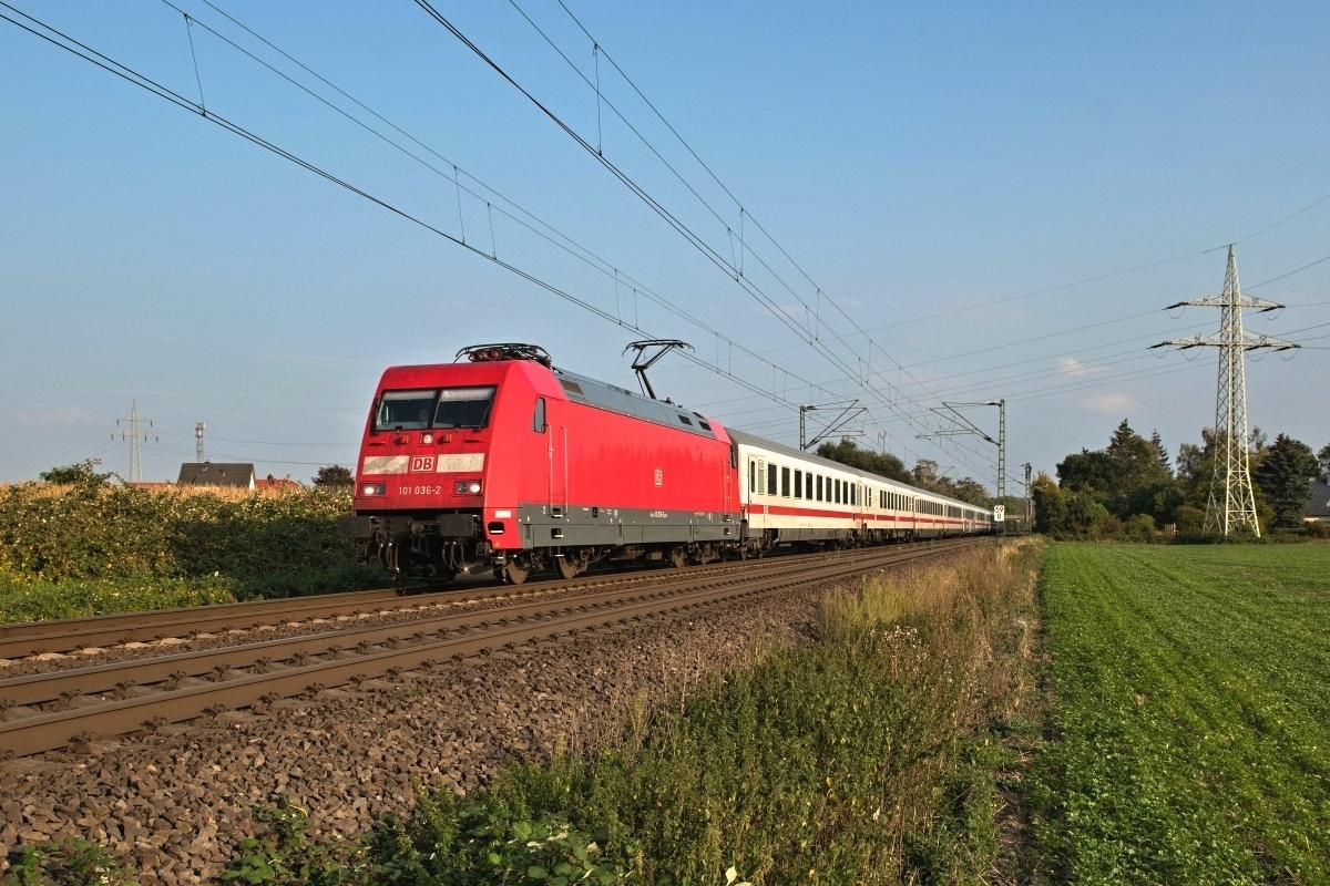 Dto. 101 001-6 am 21.09.2020 zur goldenen Stunde bei Bückeburg (HBKB) mit dem IC 2442 von