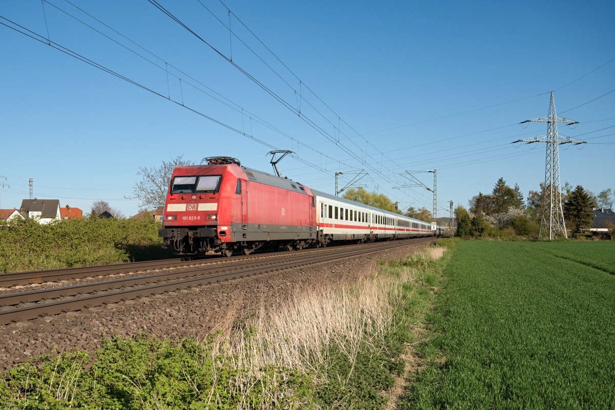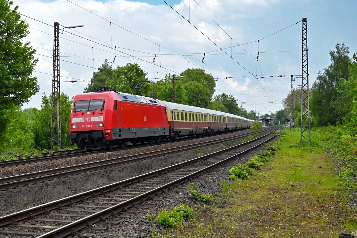 Dto. 101 008-1 am 01.05.2023 im Mindener Bf (HM) mit 2x IC Wagen bei der