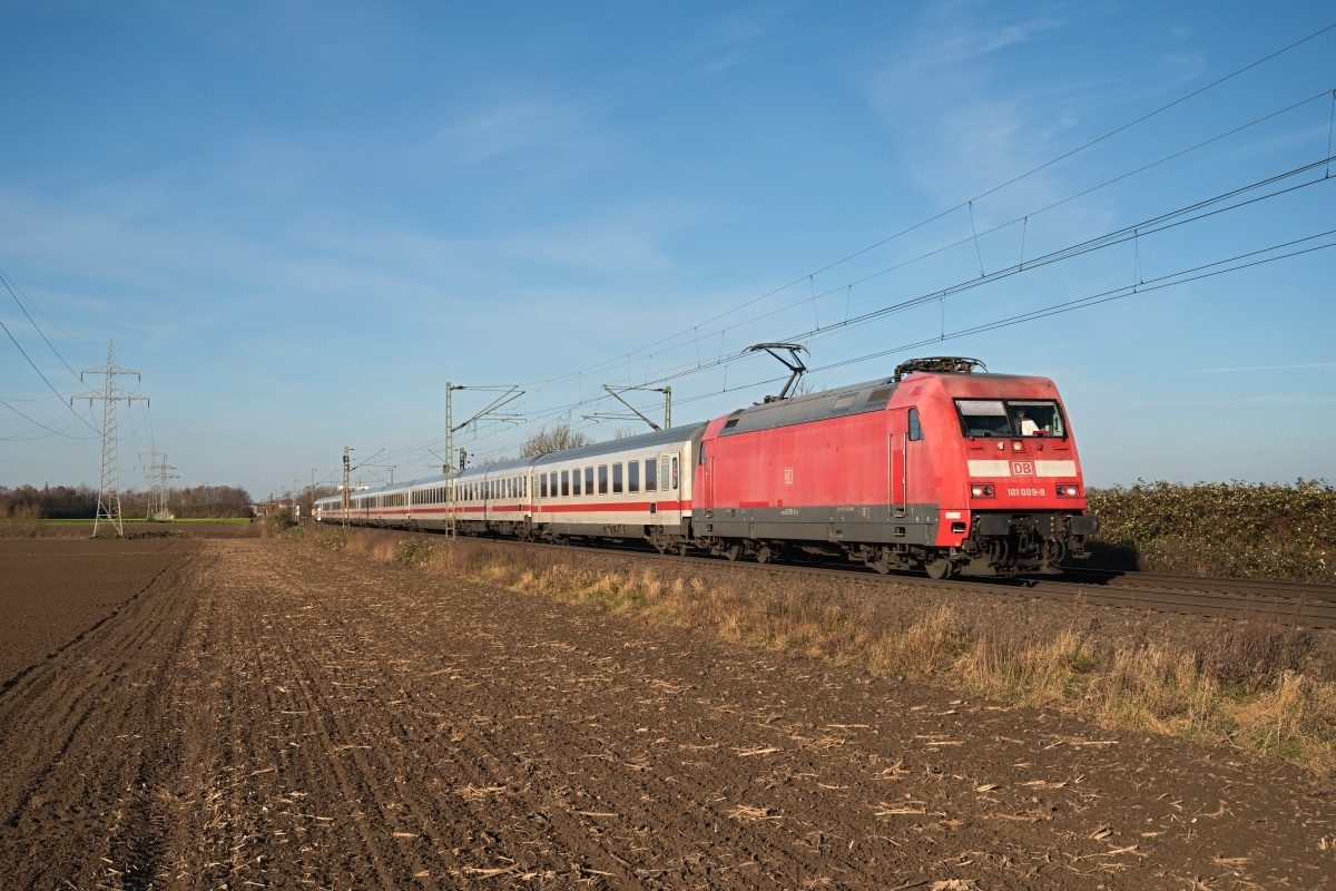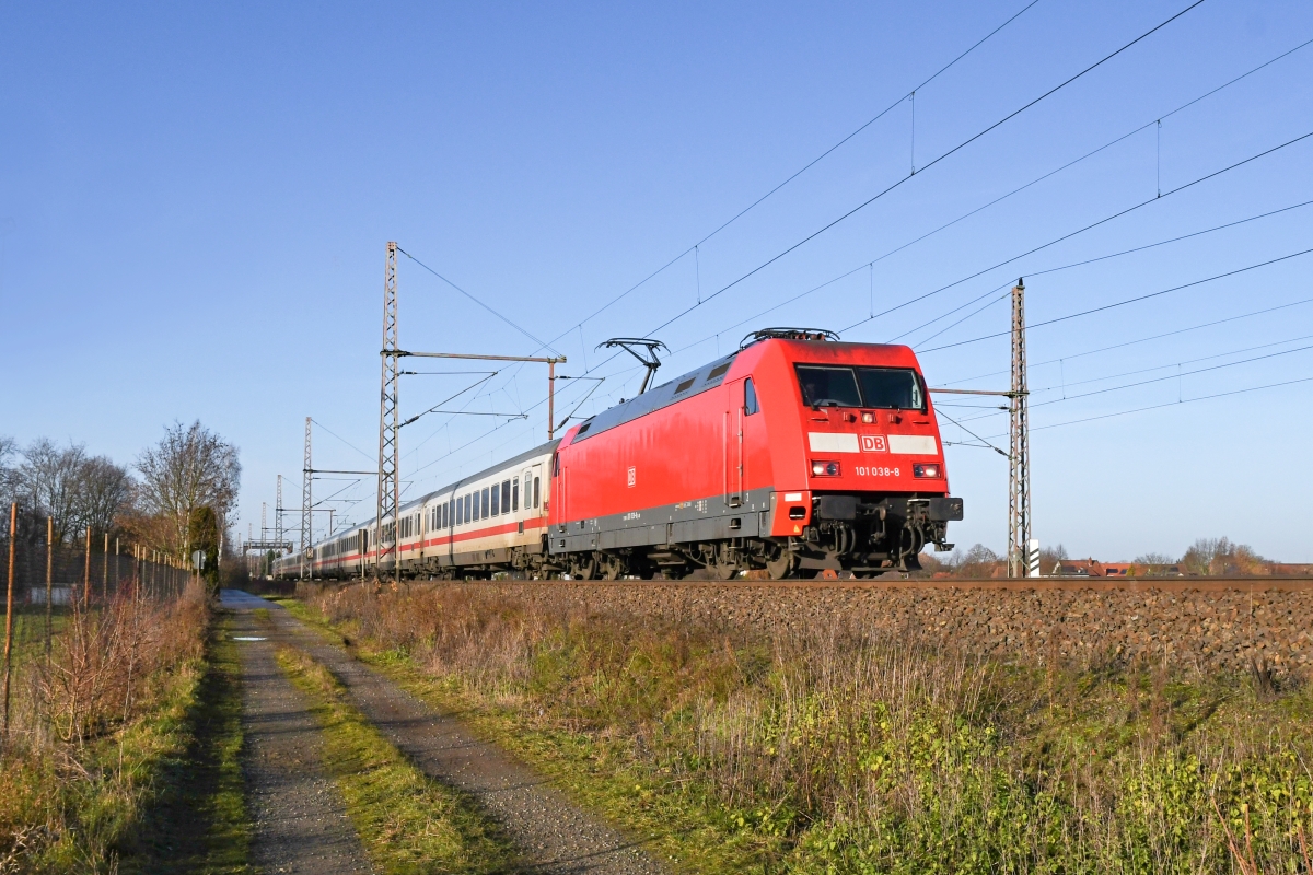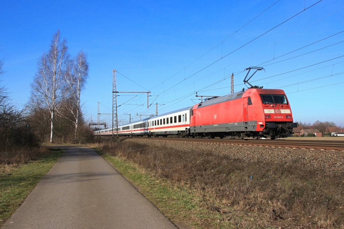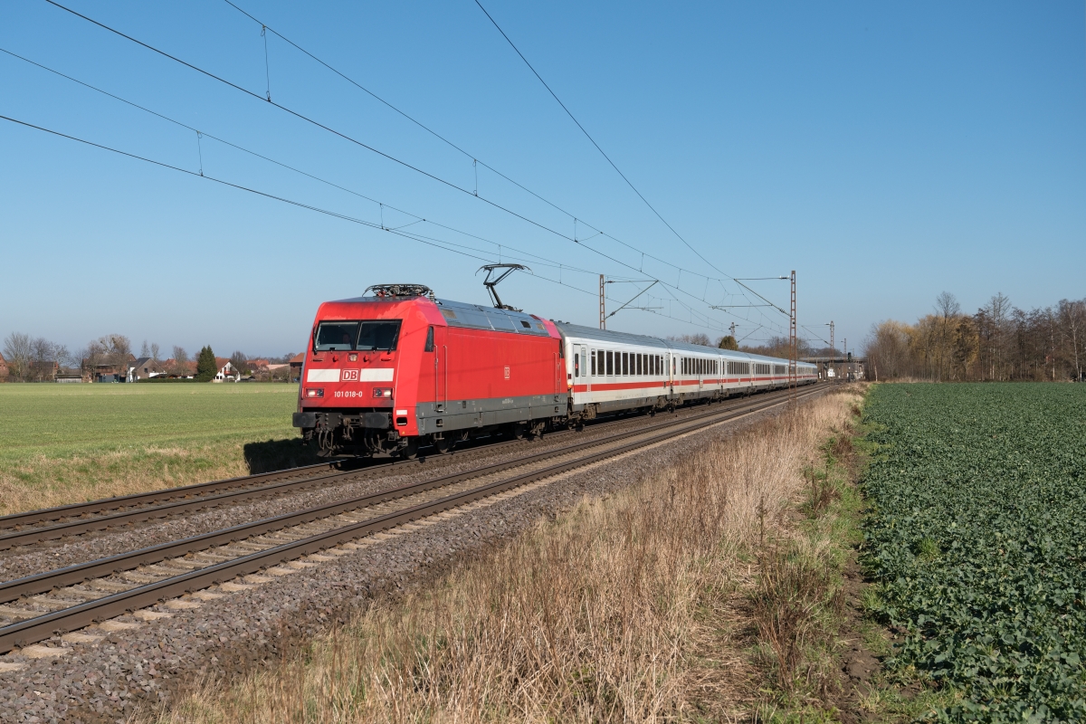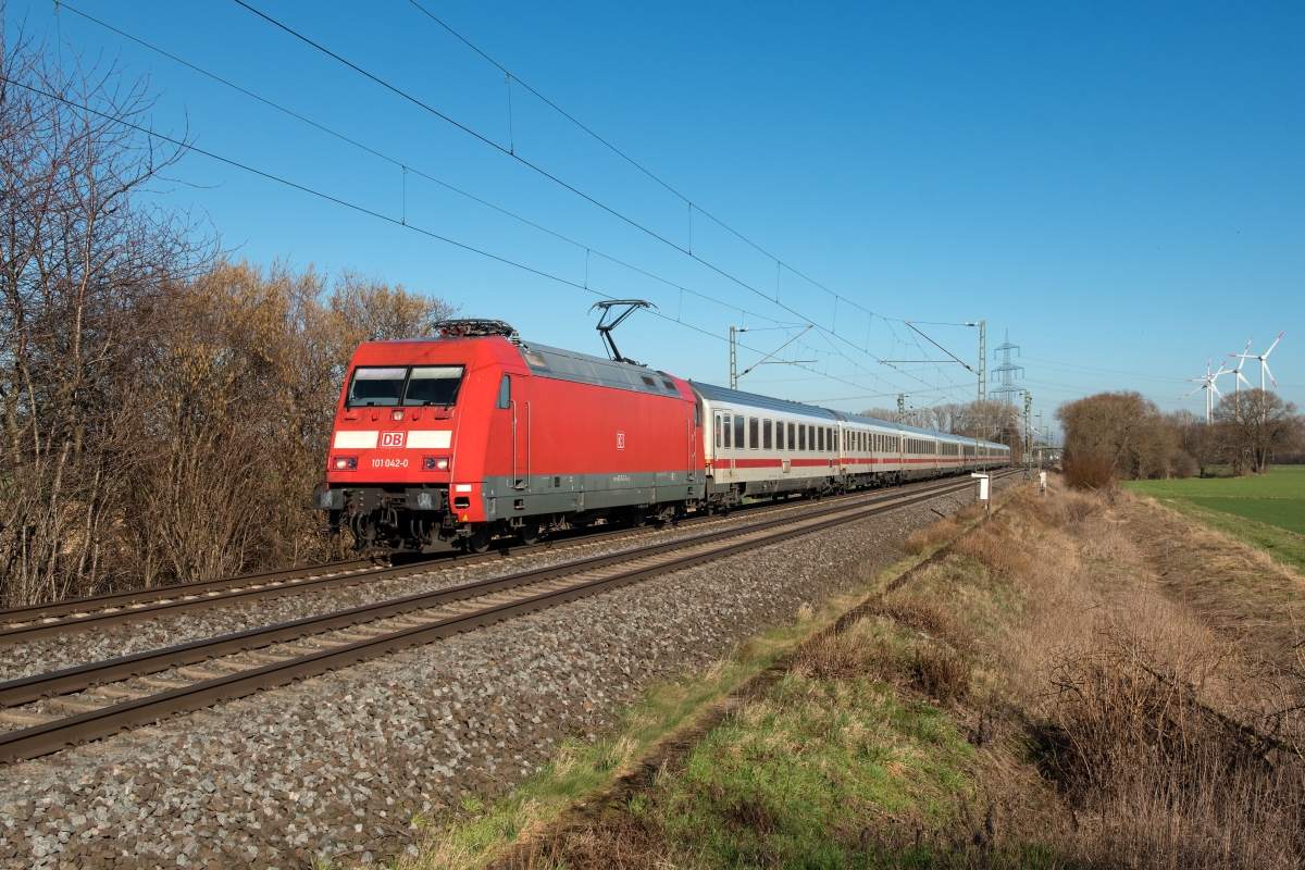Dto. 101 042-0 am 02.03.2021 bei Lindhorst (HLH) mit dem IC 144 von Berlin