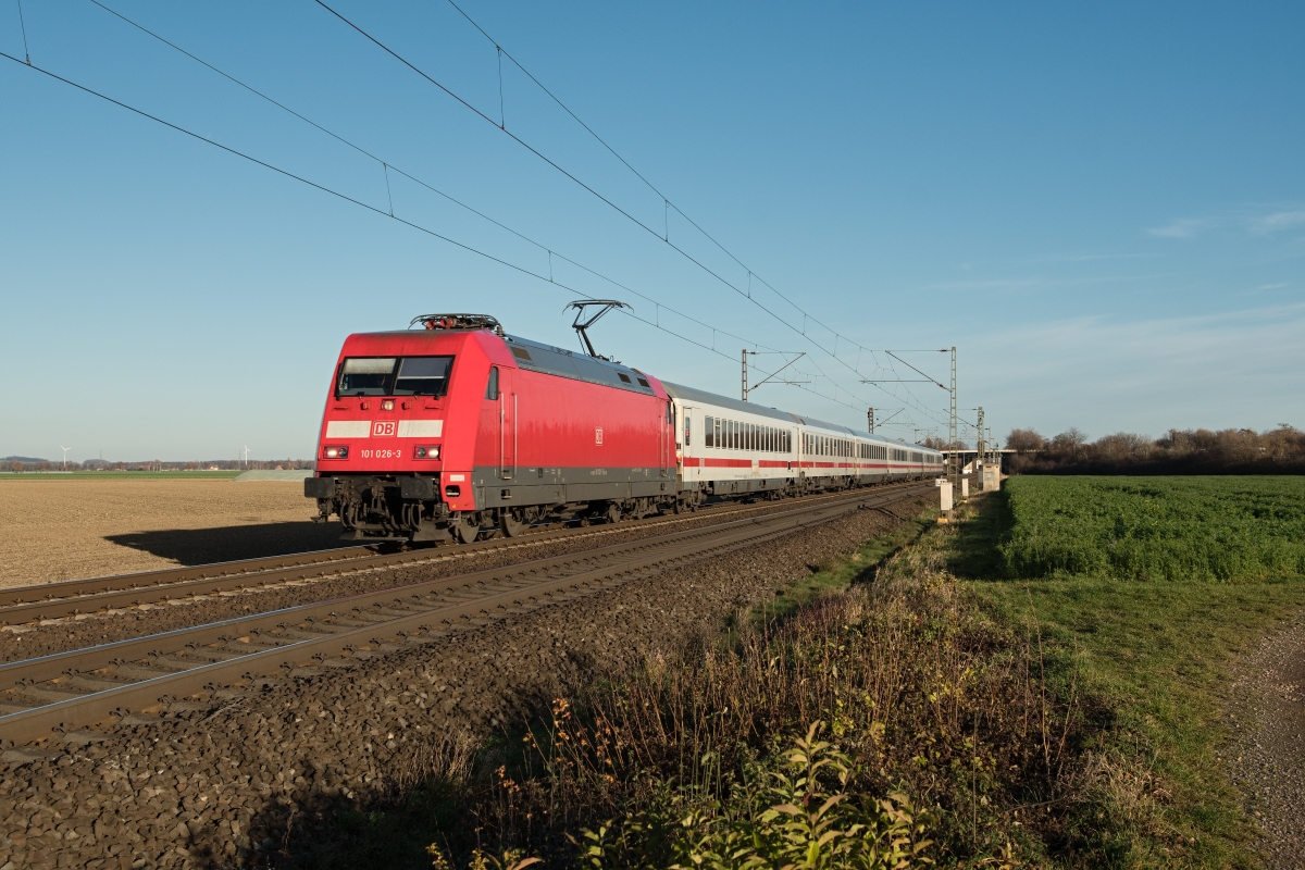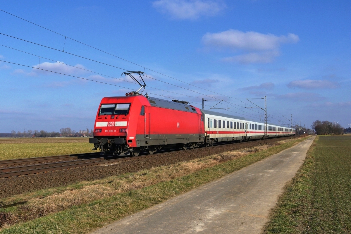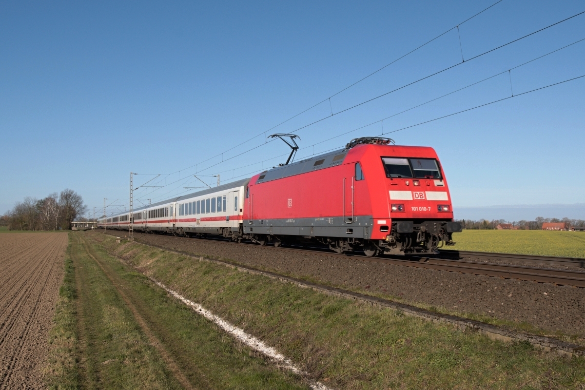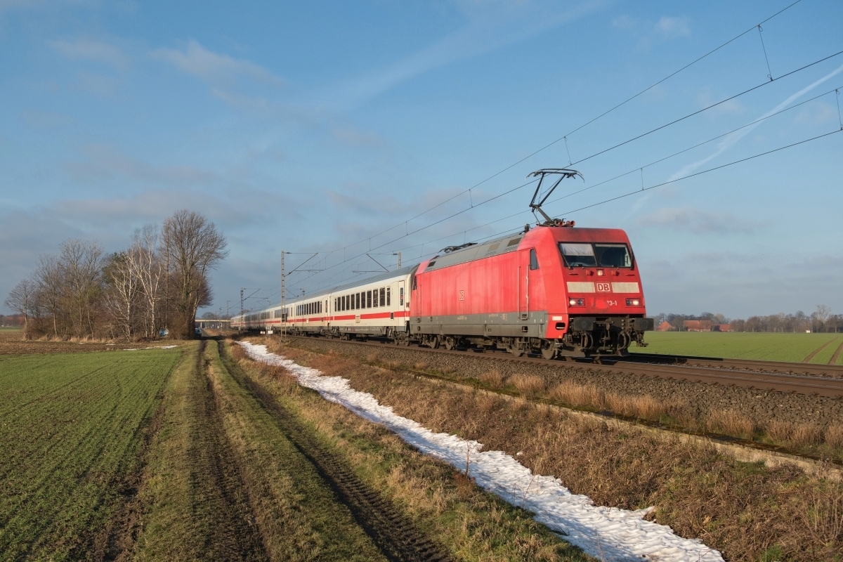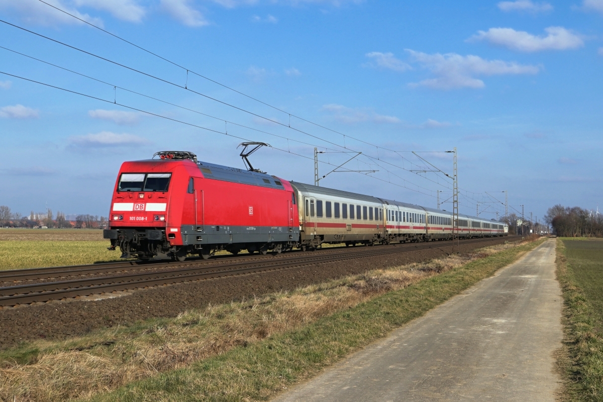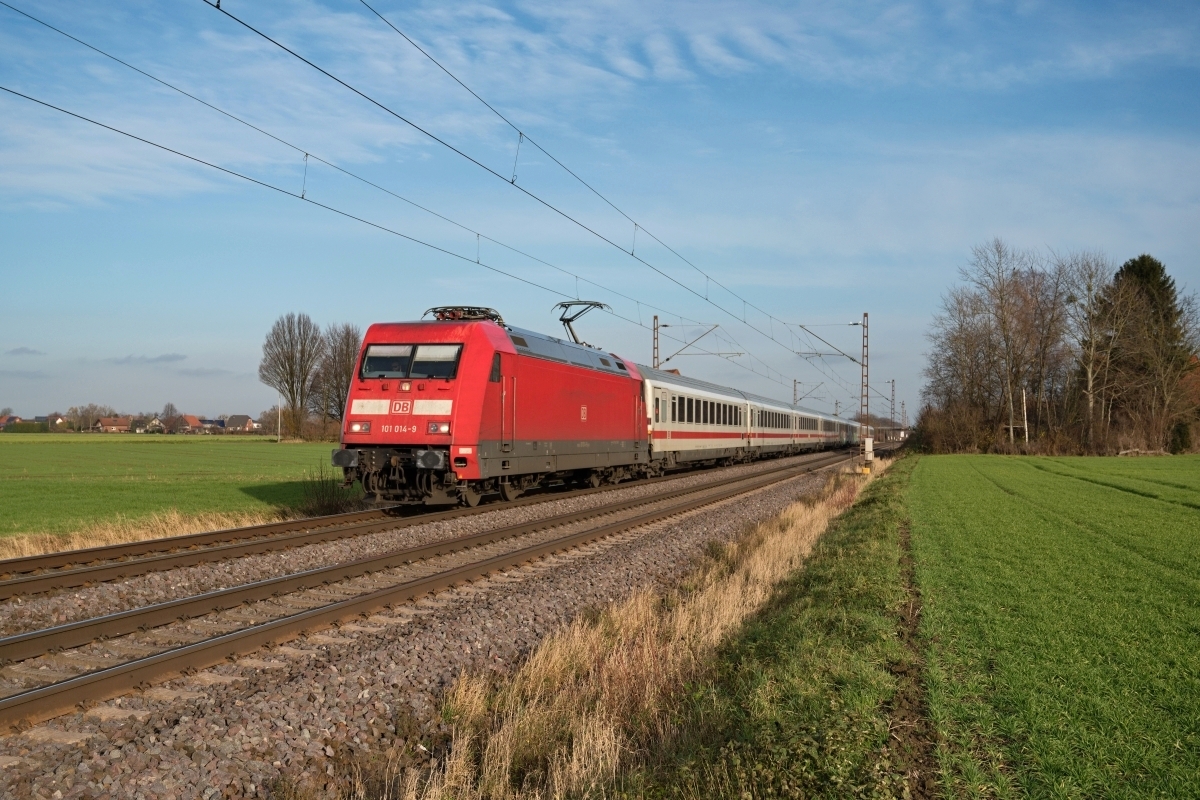 Dto. 101 042-0 am 02.03.2021 bei Lindhorst (HLH) mit dem IC 144 von Berlin