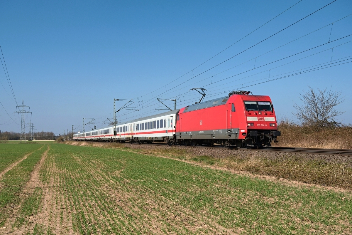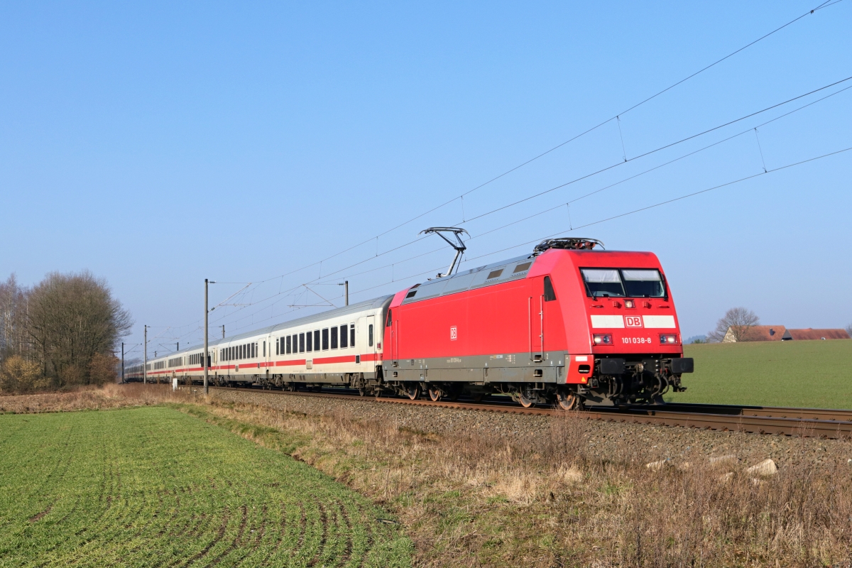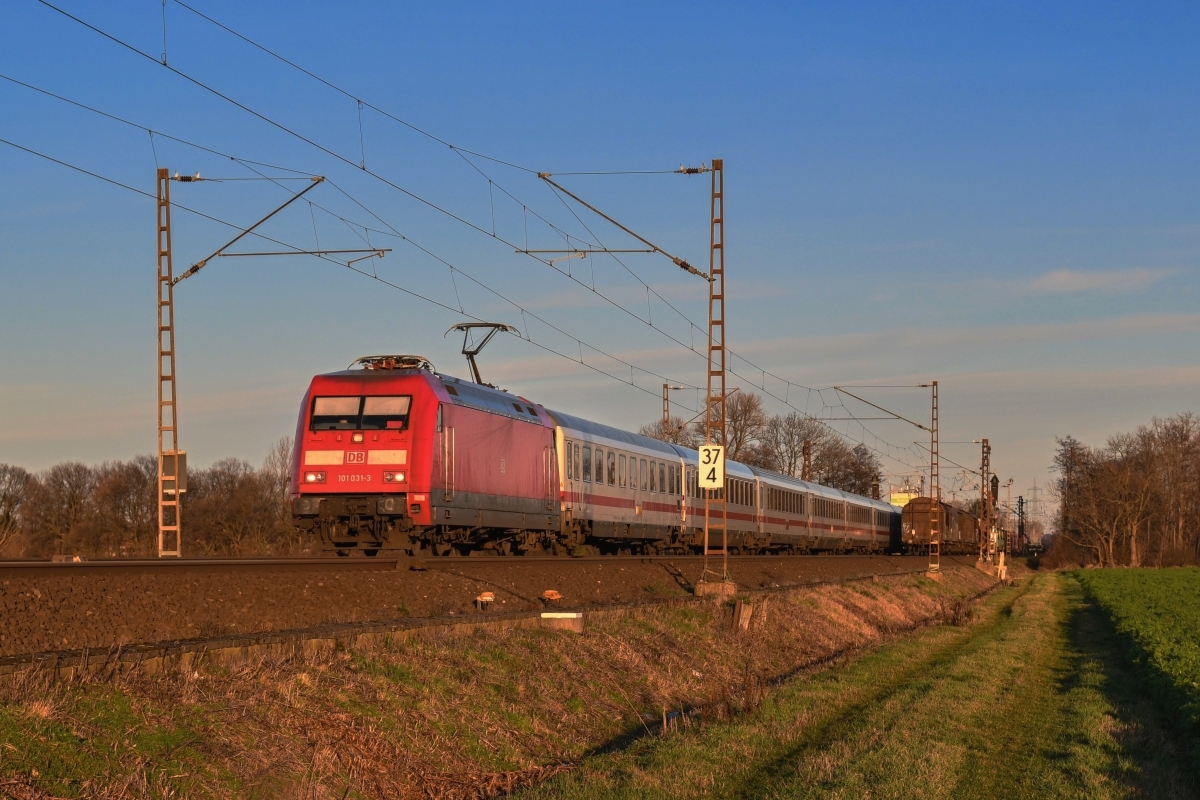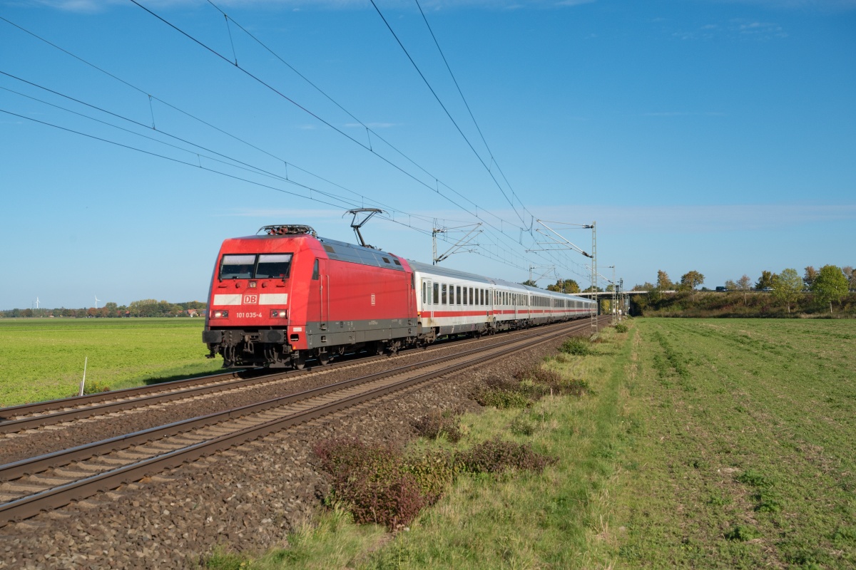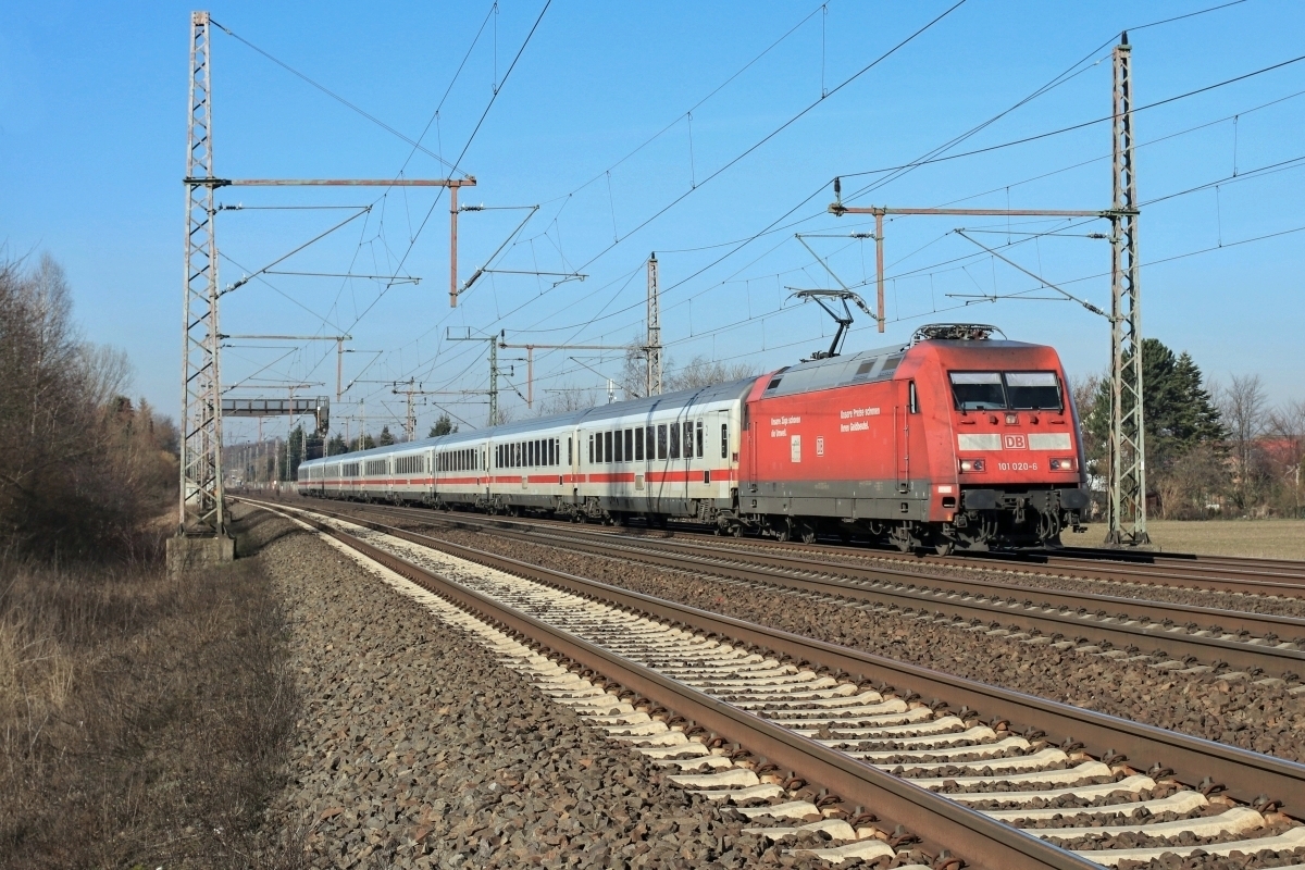 Dto. 101 042-0 am 02.03.2021 bei Lindhorst (HLH) mit dem IC 144 von Berlin