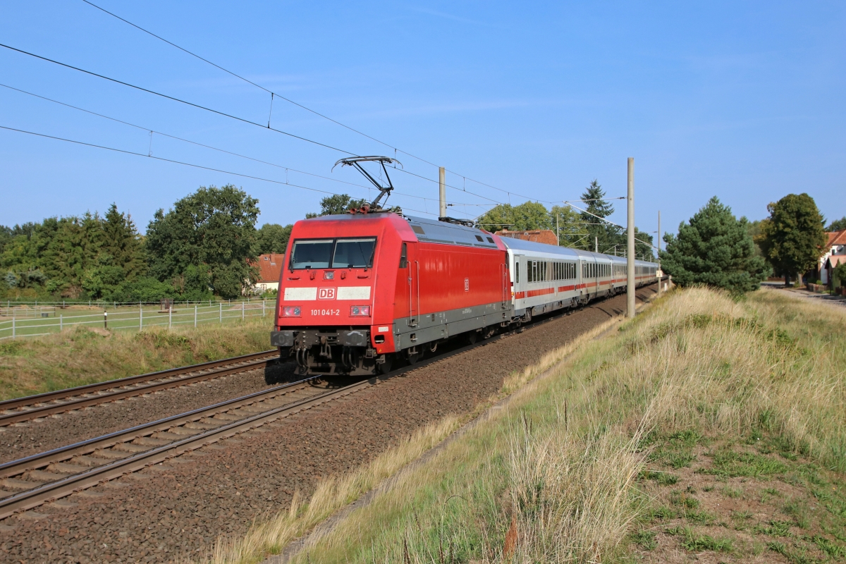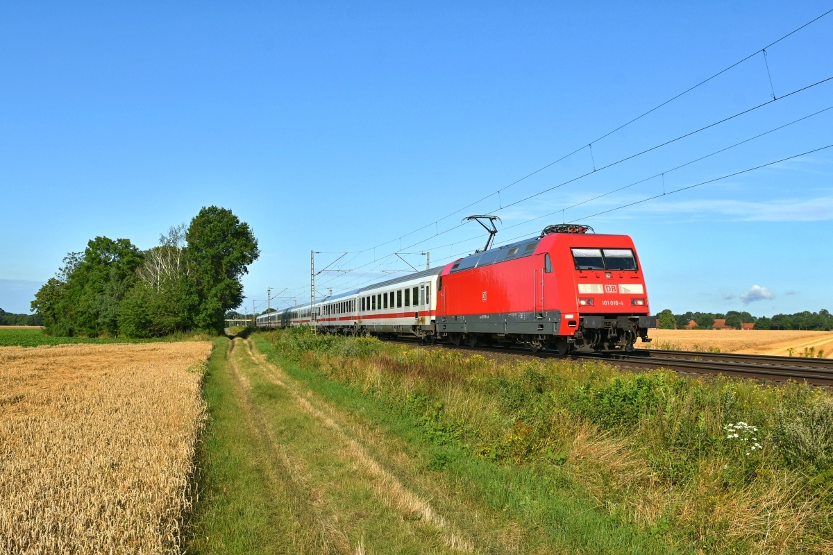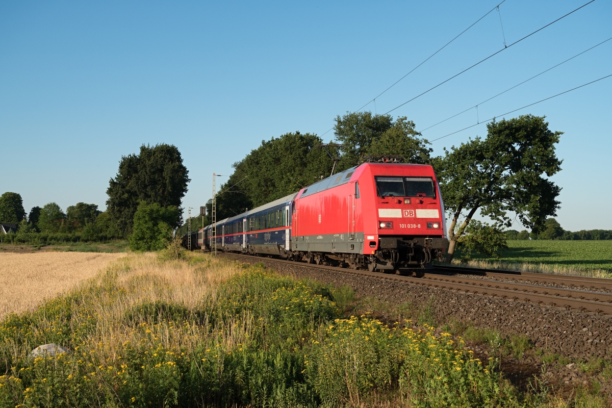 Dto. 101 038-8 am 19.08.2020 bei Lindhorst (HLH) Vornhagen mit dem IC 141