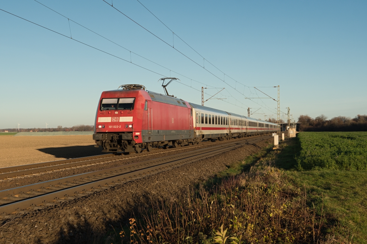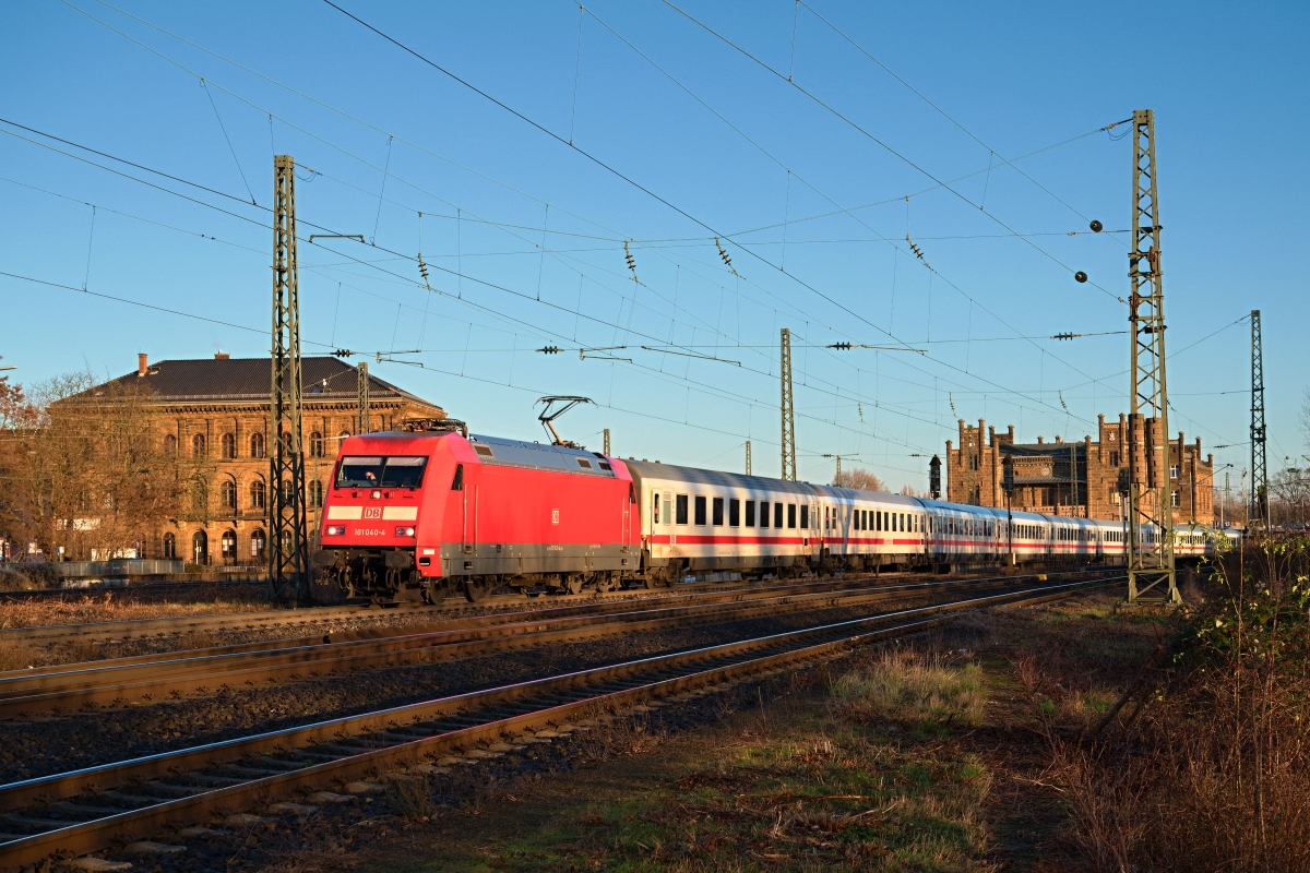 Dto. 101 040-4 am 10.12.2021 bei der Abfahrt mit dem frühen IC 240 von