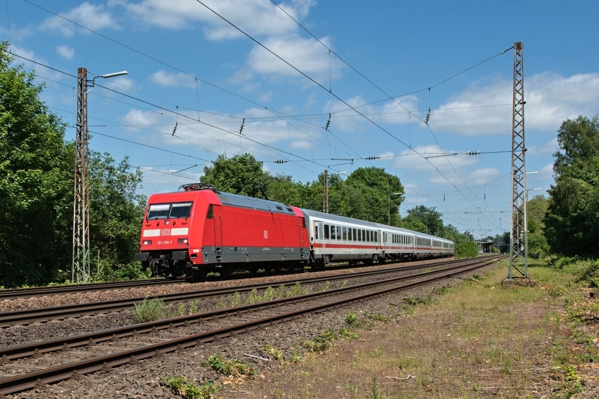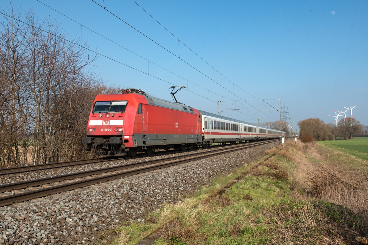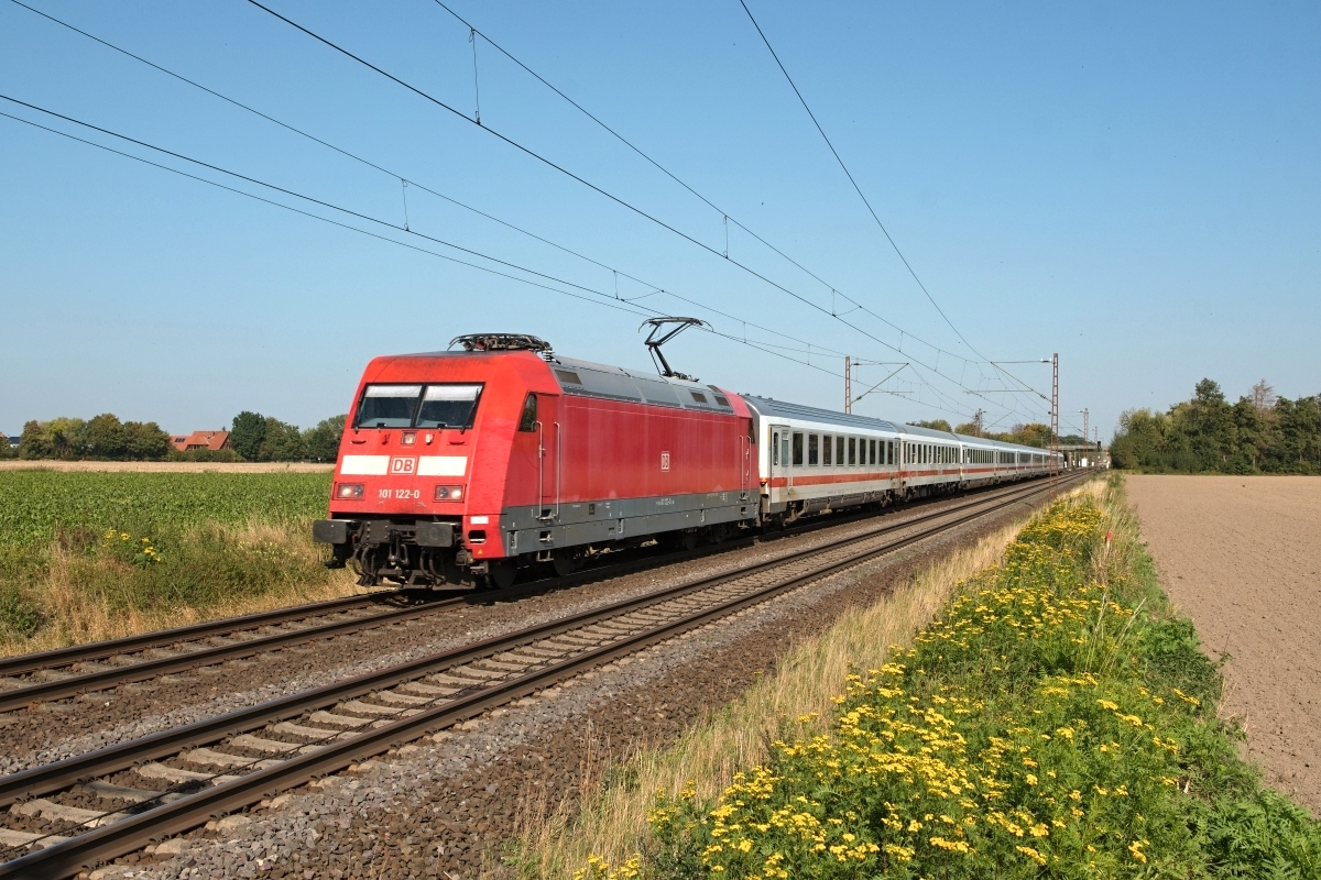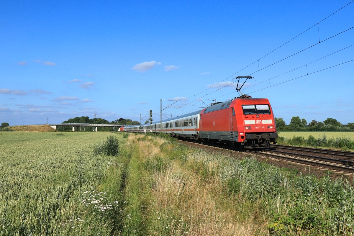 bei Wierthe (HWIR) mit 101 090-9 und 4x IC-Wagen als DbZ in Rtg.