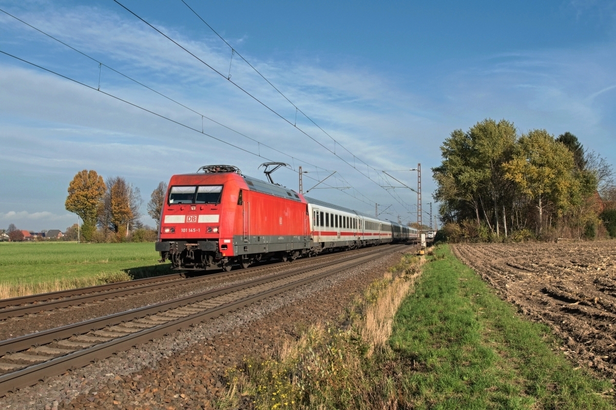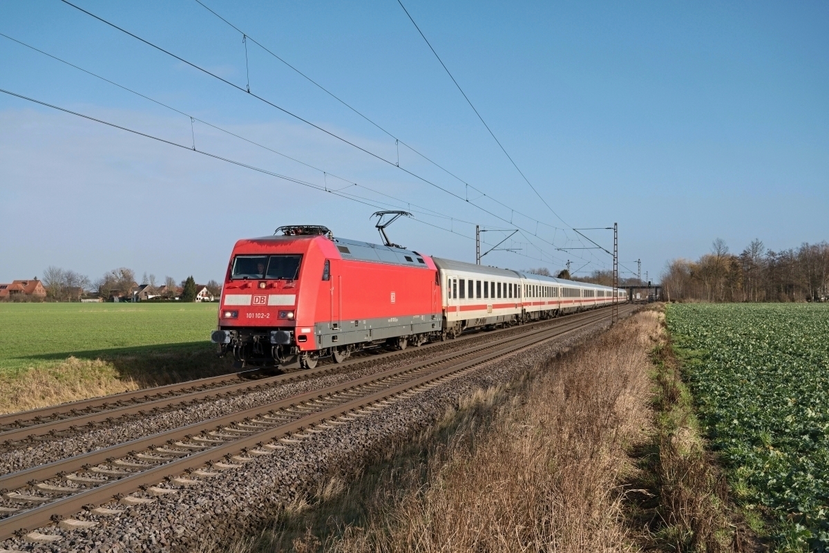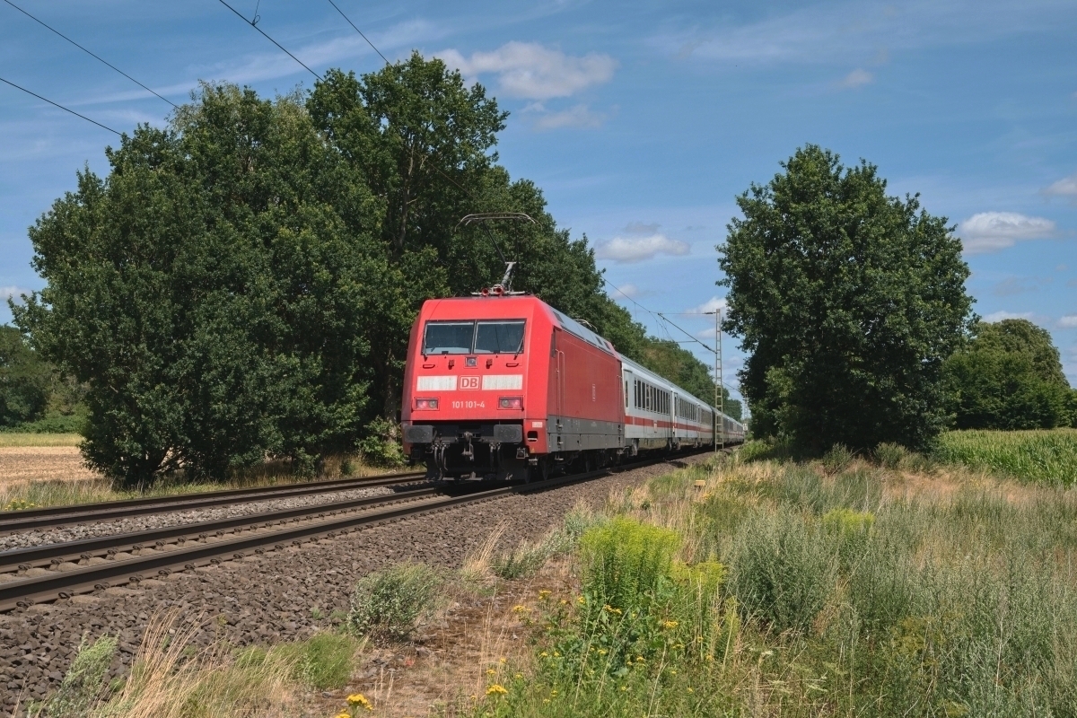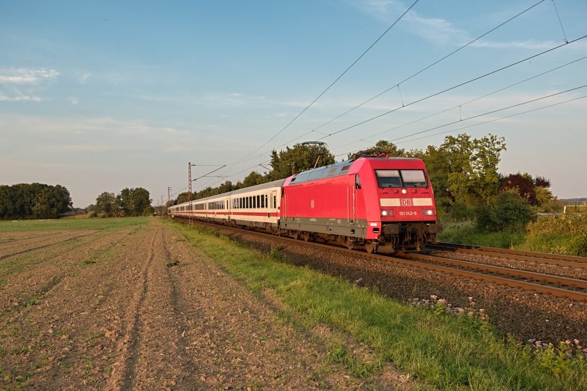 bei Wierthe (HWIR) mit 101 090-9 und 4x IC-Wagen als DbZ in Rtg.