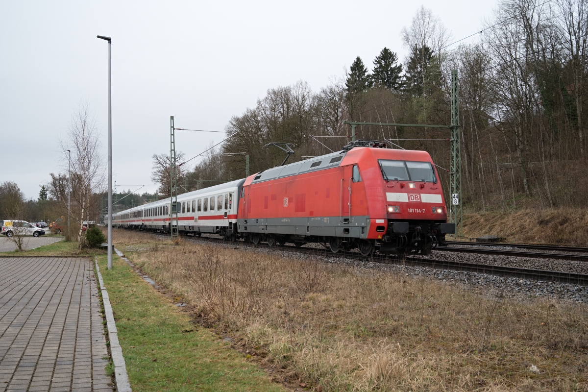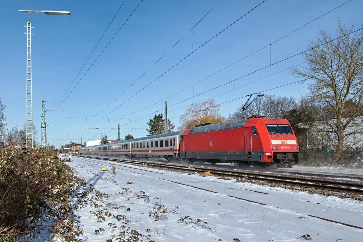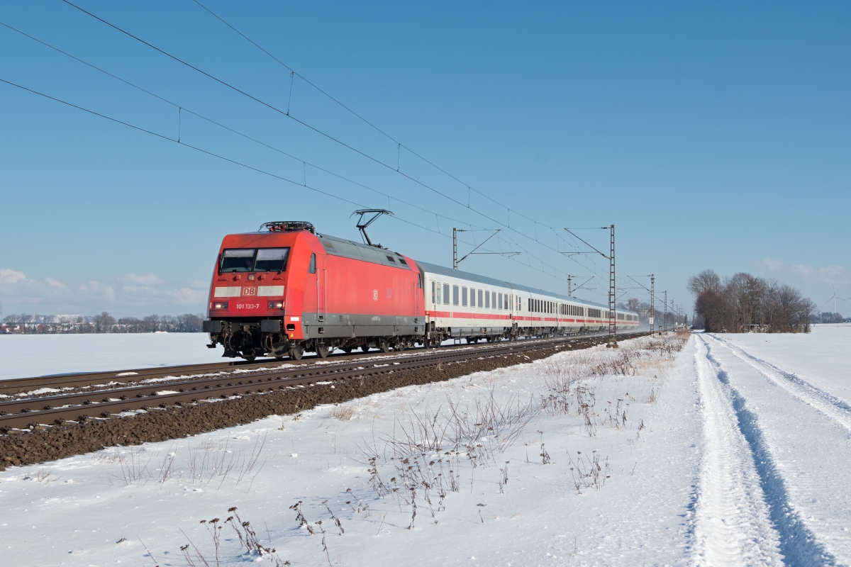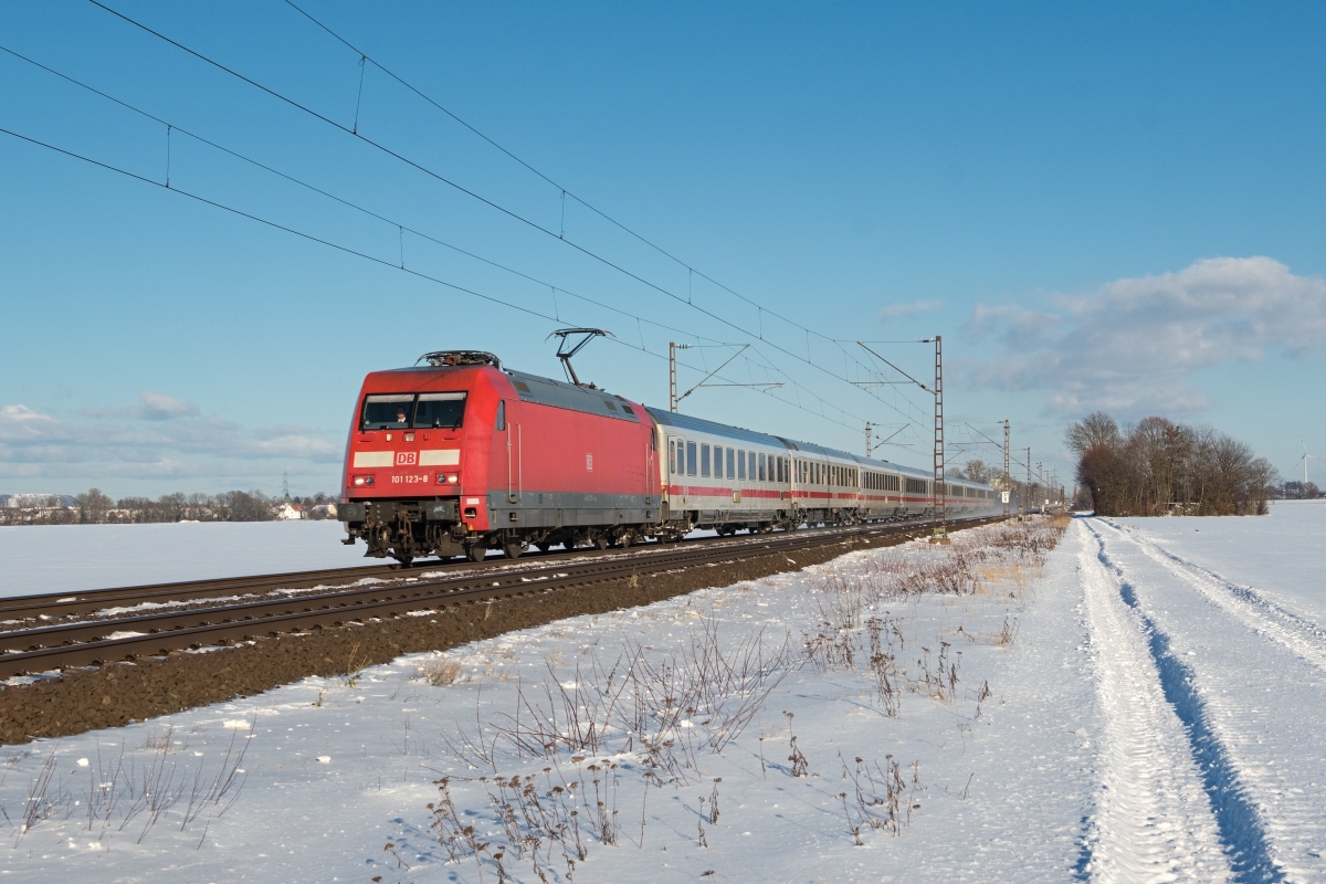 Dto. 101 123-8 am 12.02.2021 bei Lindhorst (HLH) Vornhagen mit einem IC 144