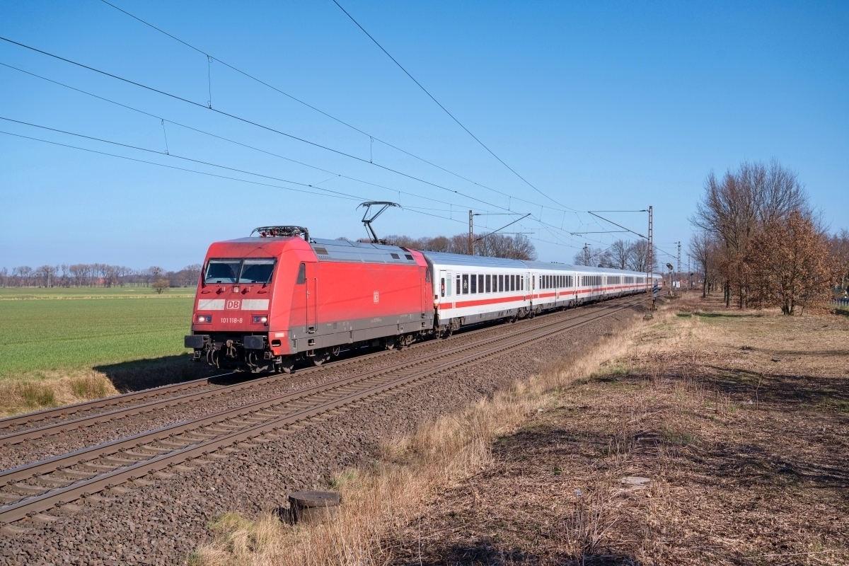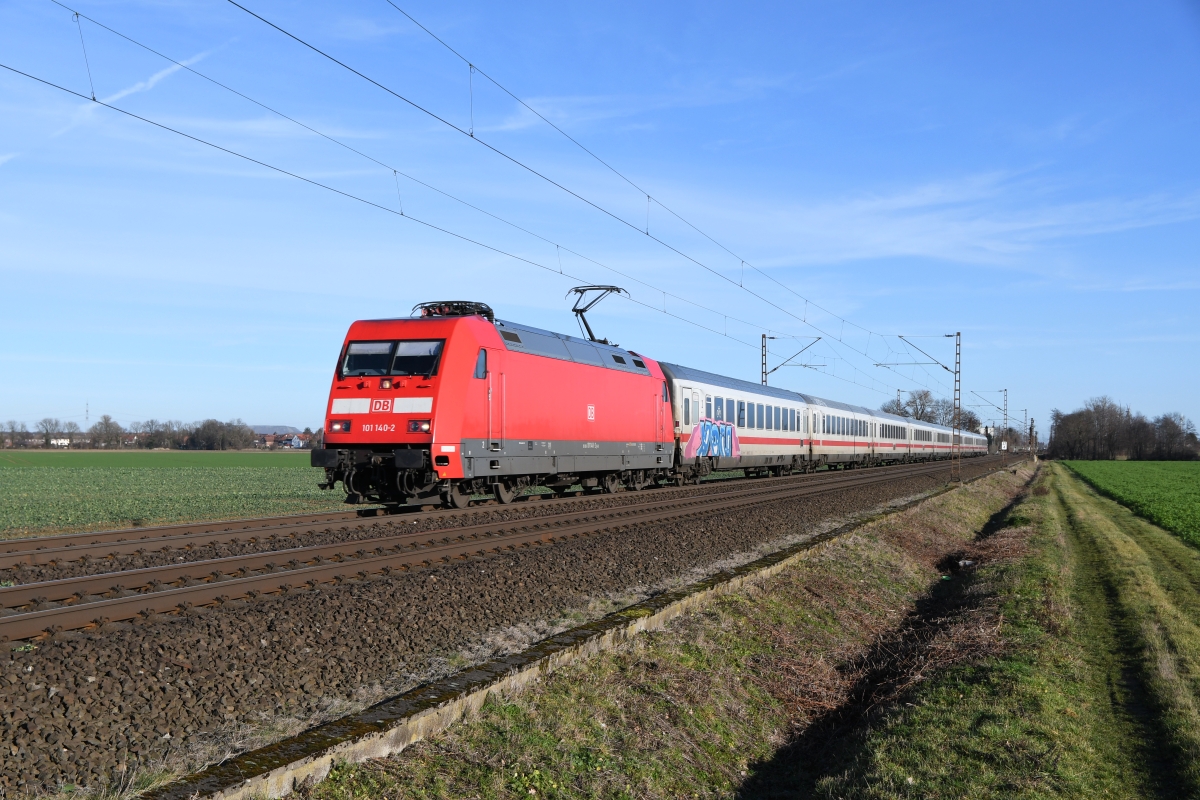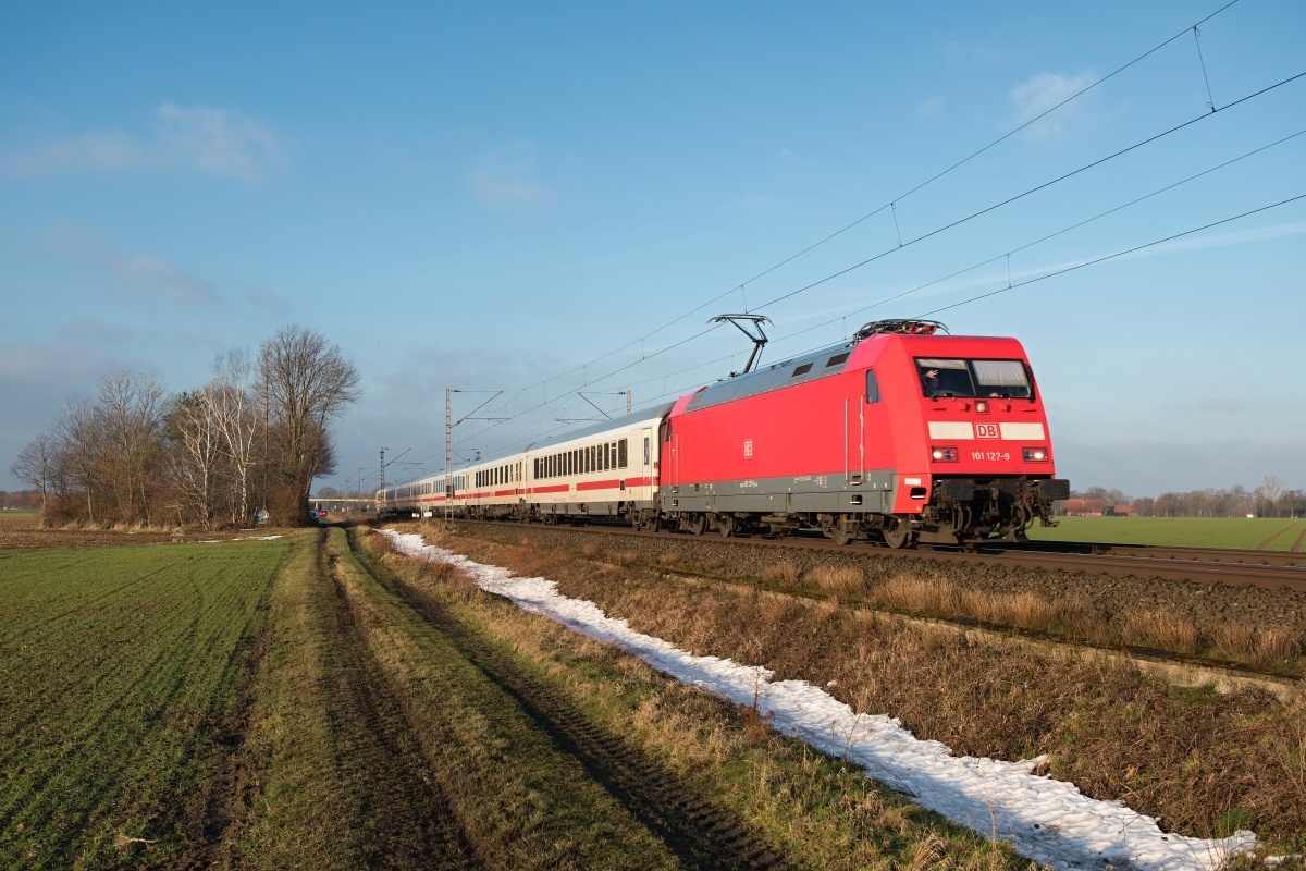hier am 03.03.2022 bei Bückeburg (HBKB) mit dem IC 146 von Berlin Ostbahnhof