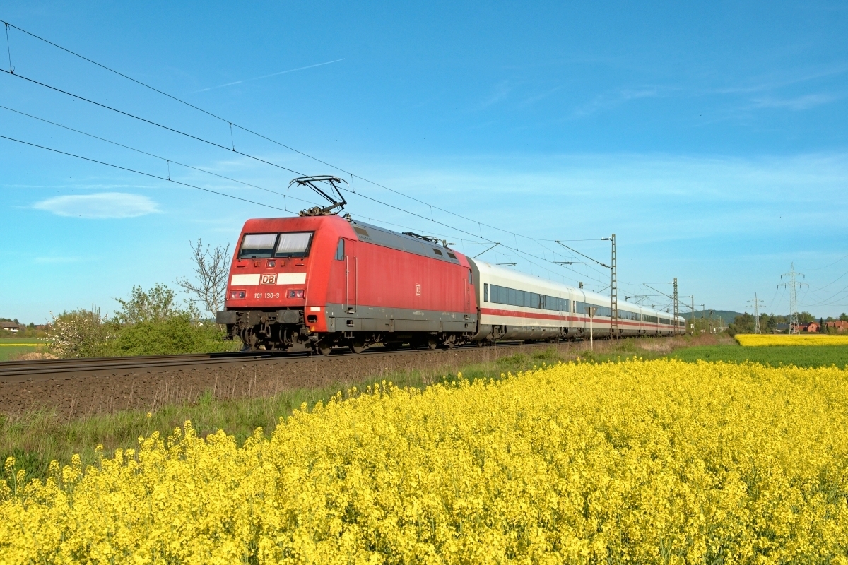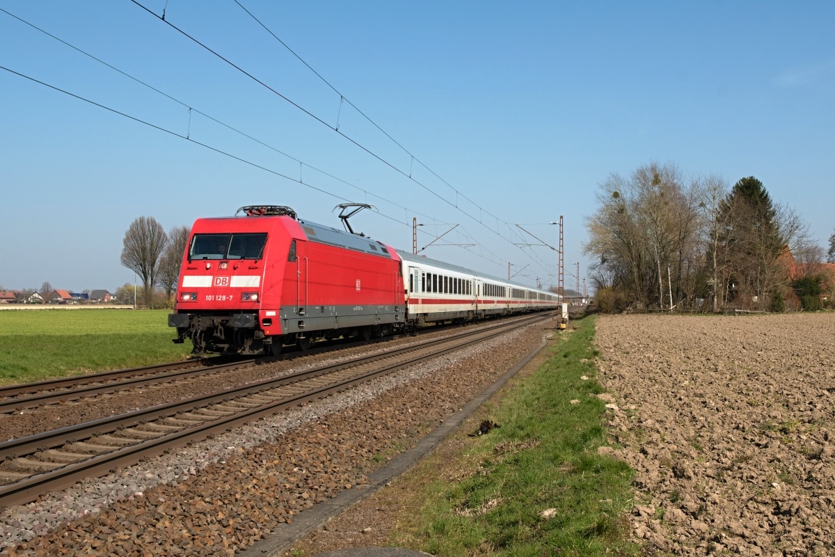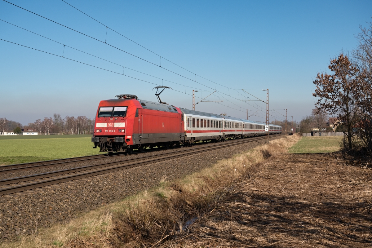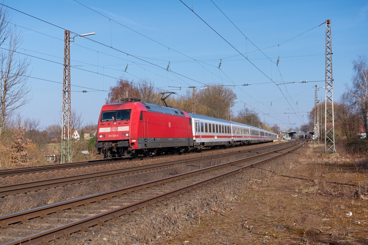 hier am 27.03.2020 bei Bückeburg (HBKB) Echtorf mit dem IC 146 von Berlin