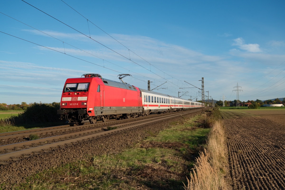 Dto. 101 127-9 am 12.10.2022 bei Bückeburg (HBKB) Evesen mit dem IC 142 von