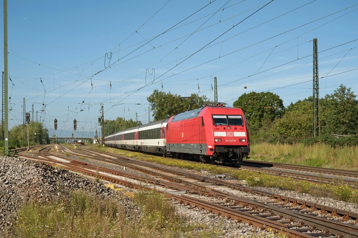 Dto. 101 127-9 am 01.10.2023 in der Ausfahrt von Mainz-Bischofsheim (FMB)