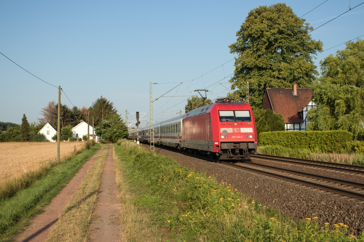 Dto. 101 145-1 am 05.09.2020 bei Lindhorst (HLH) Vornhagen mit dem IC 146 von