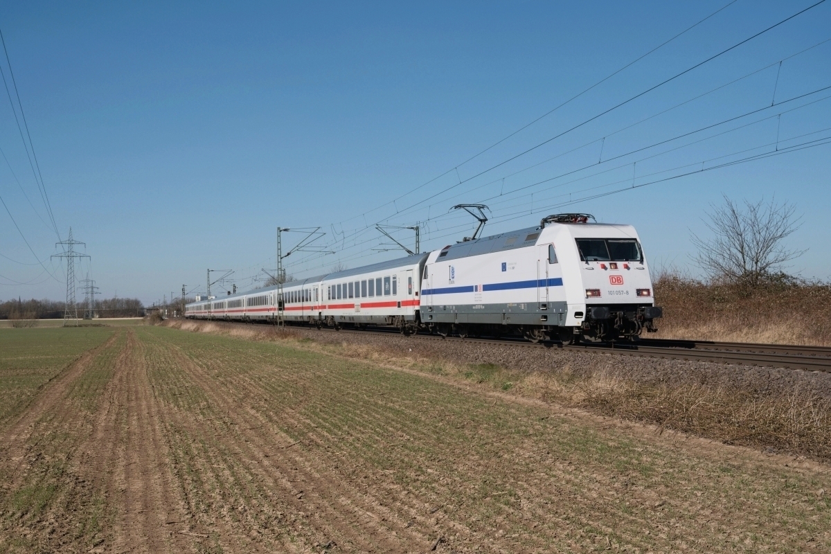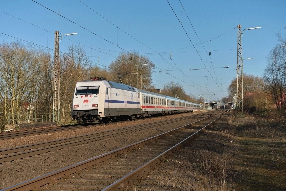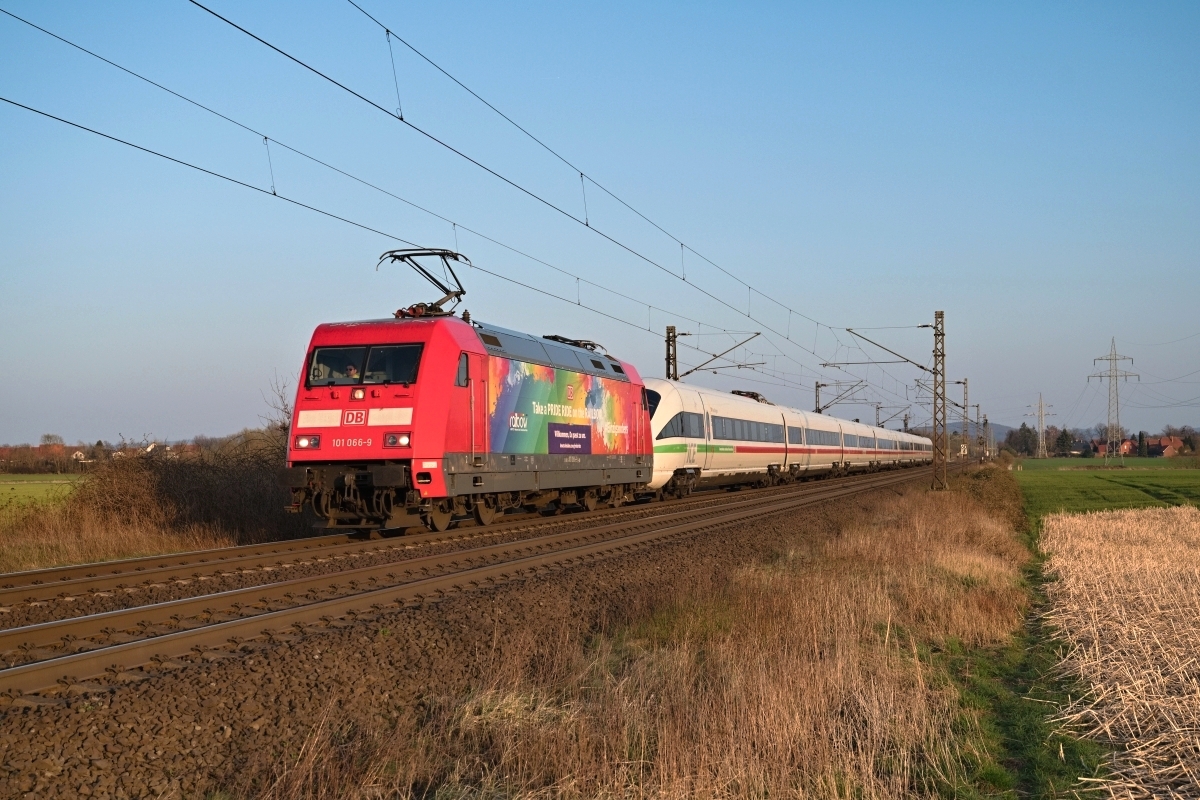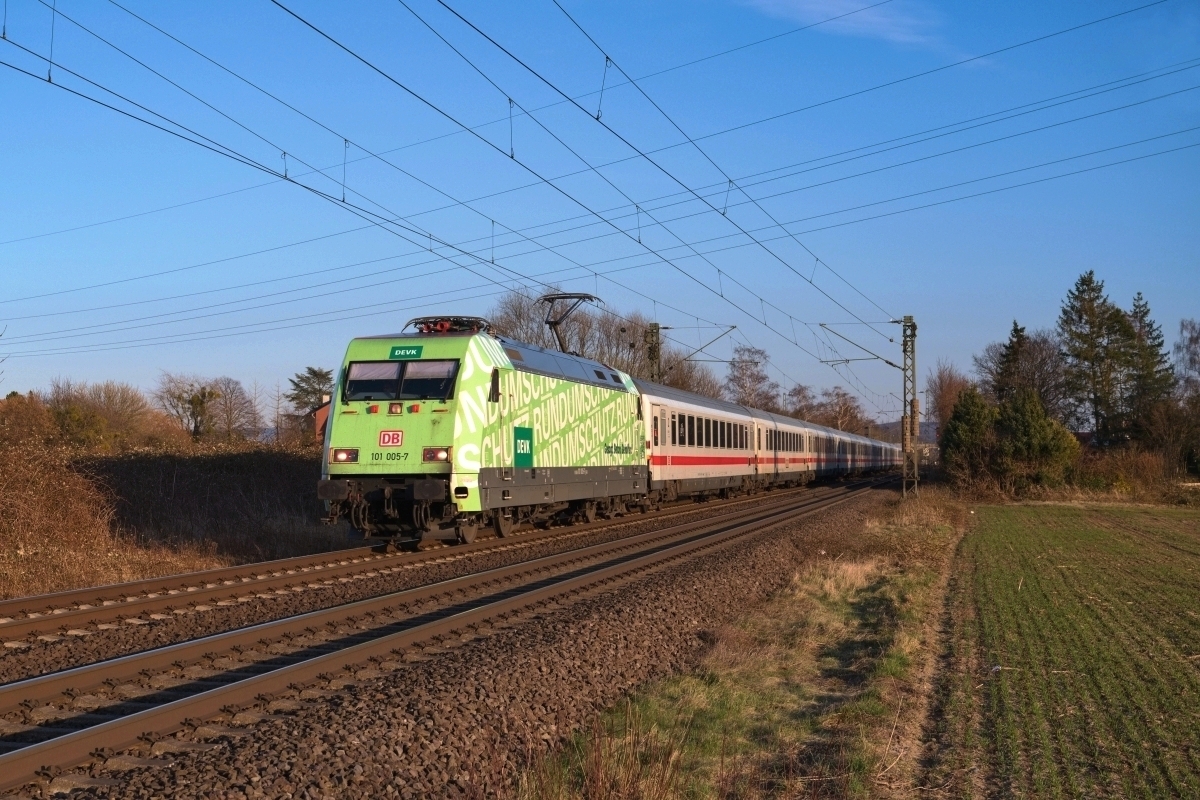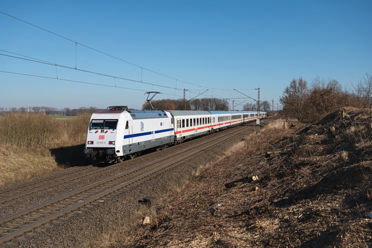 Dto. 101 005-7 am 13.03.2022 bei Bückeburg (HBKB) mit dem IC 142 von Berlin