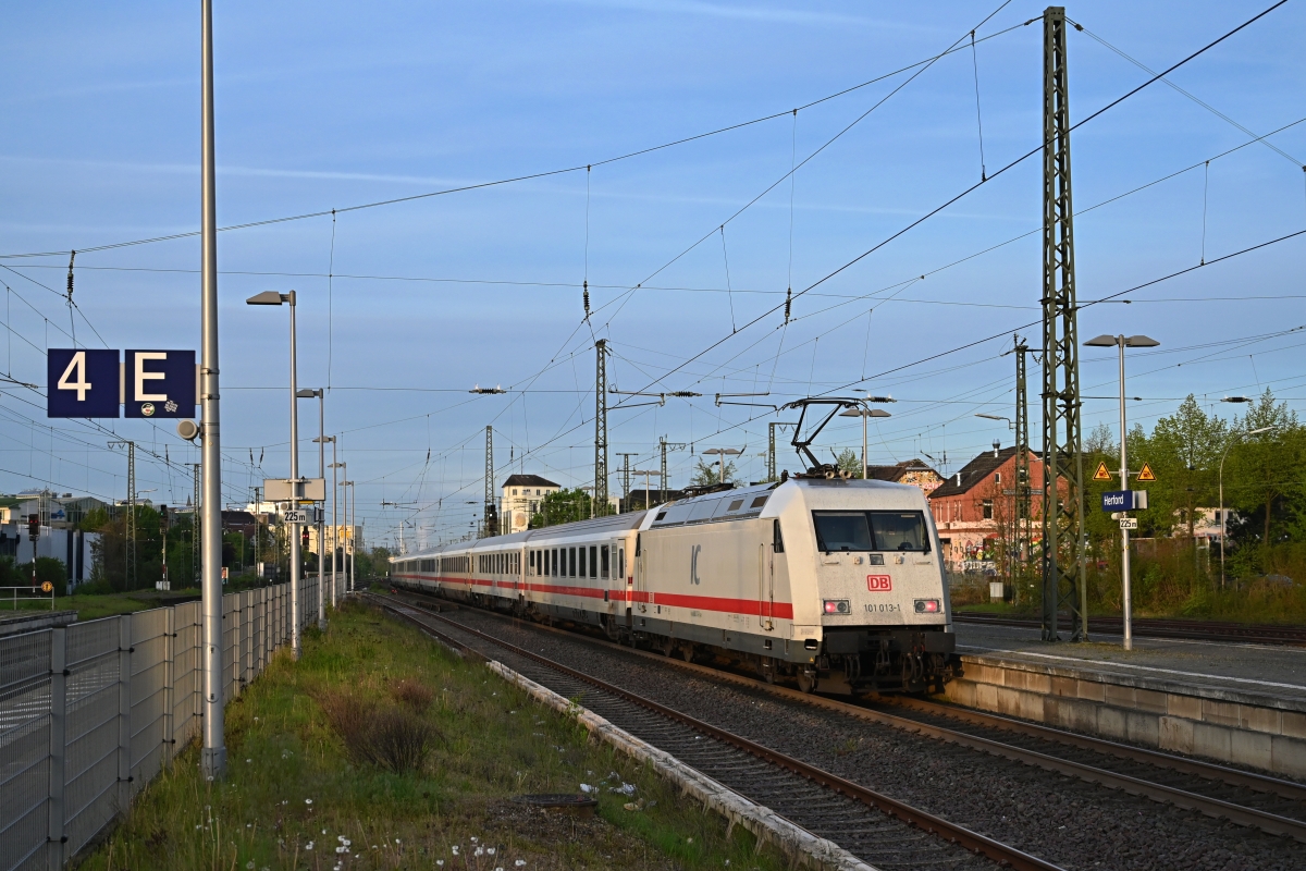 Dto. 101 013-1 früh morgens am 04.05.2023 gerade bei der Abfahrt aus dem