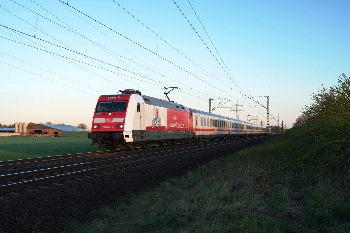 Dto. 101 064-4 am 01.04.2020 bei Lindhorst (HLH) Vornhagen mit dem IC 144