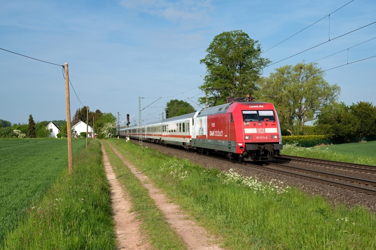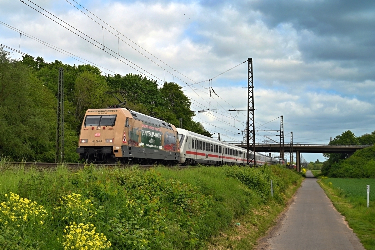 Dto. 101 057-8 am 12.05.2023 bei Bückeburg (HBKB) Berenbusch mit dem IC