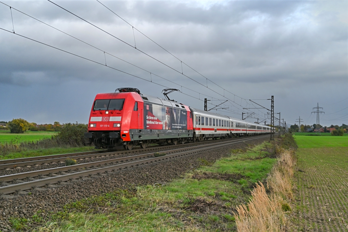 Dto. 101 119-6 frühmorgens am 22.11.2017 in Minden vor dem IC 2083 Rtg.