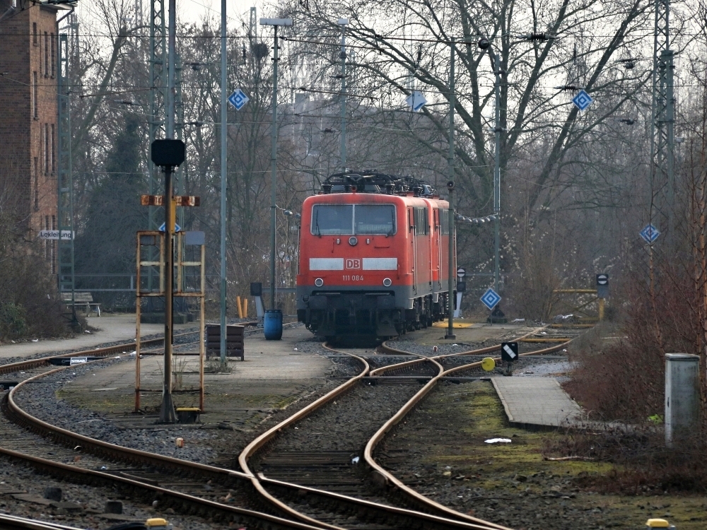 Hier schob 111 084-0 am 27.11.2015 den RE 70 zum Bahnsteig in Minden. Damals