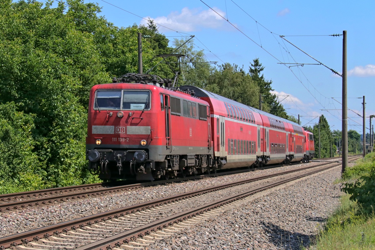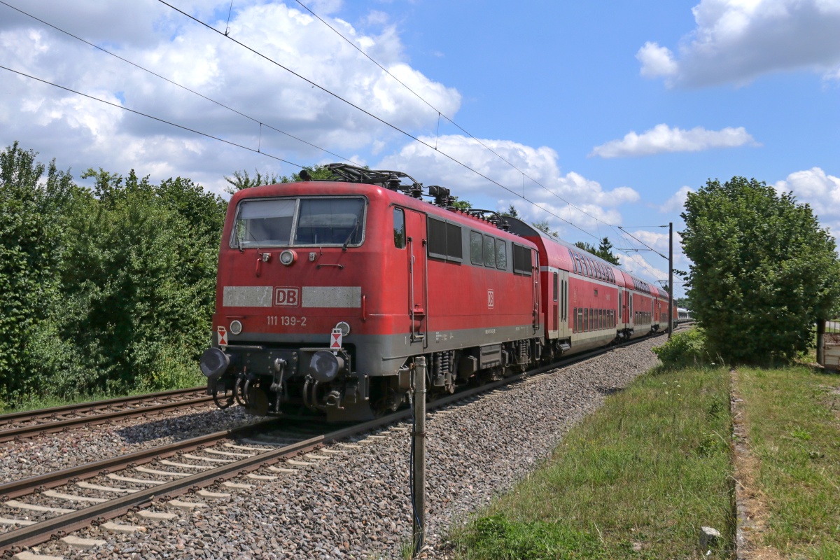Dto. 111 139-2 am 13.07.2017 mit 111 163-2 und dem Sandwich RE auf dem