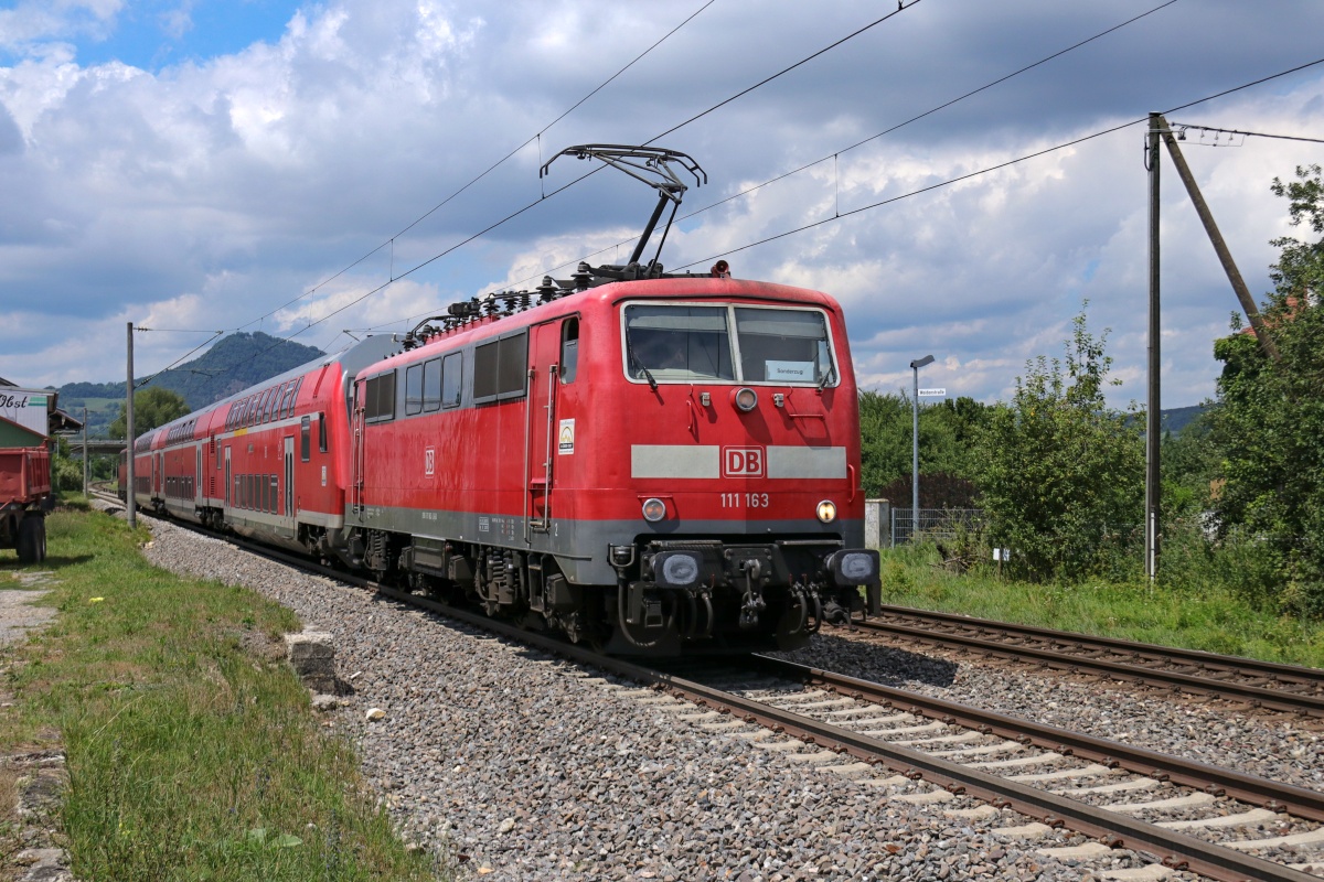 111 163-2 (NVR: 9180 6 111 163-2 D-DB) passierte hier am 13.07.2017 Mühlhausen mit einem RE im