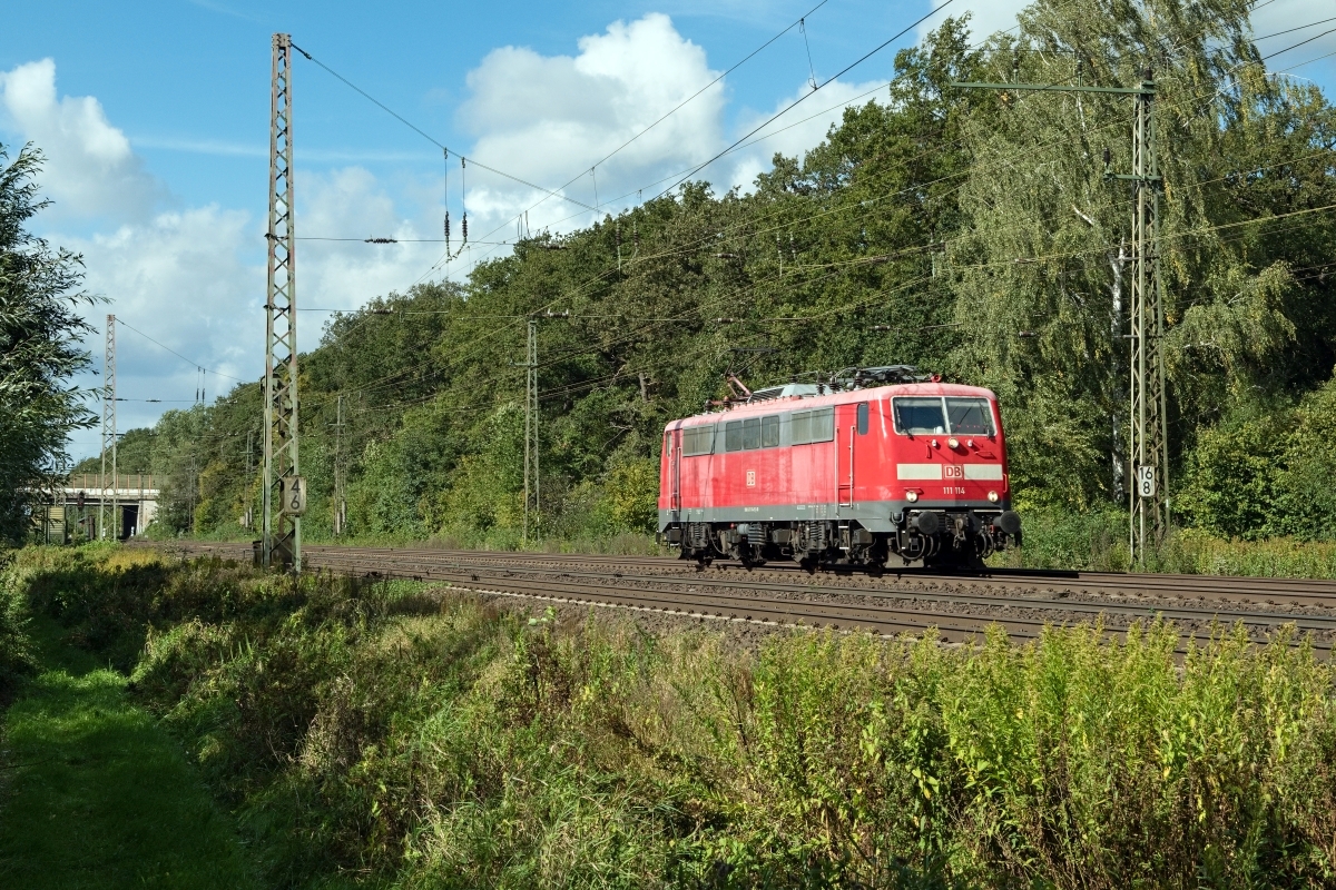 Dto. 111 011-3 bei gleißendem Mittagslicht am 30.09.2022 im Nachschuss bei Stadthagen