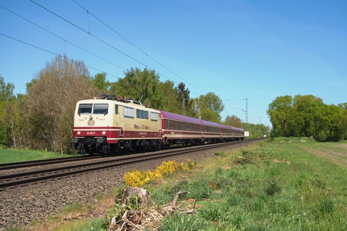 Dto. 111 212-7 am 09.05.2022 bei Twistringen (HT) mit dem DPF 1845 von Kiel