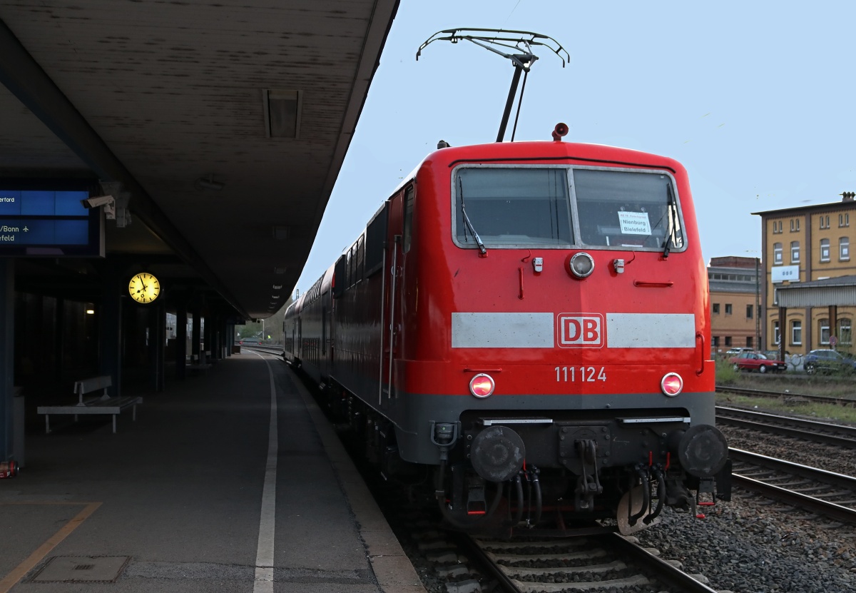 Dto. 111 116-0 bei der Abfahrt als RE78 am 01.06.2017 aus dem Herforder