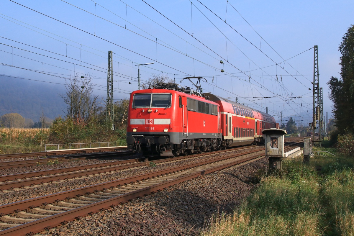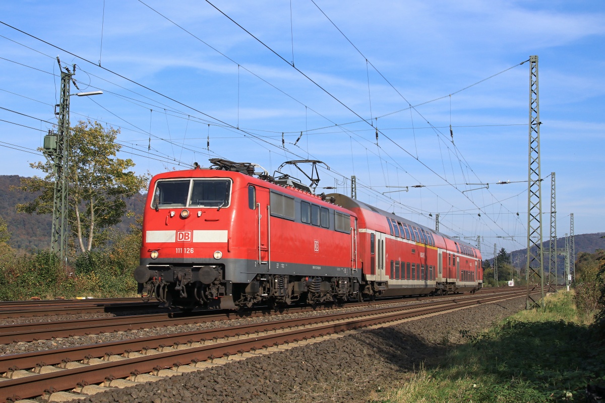 Dto. 111 126-9 am 18.10.2017 bei Vennebeck mit dem RE78 Rtg. Bielefeld
