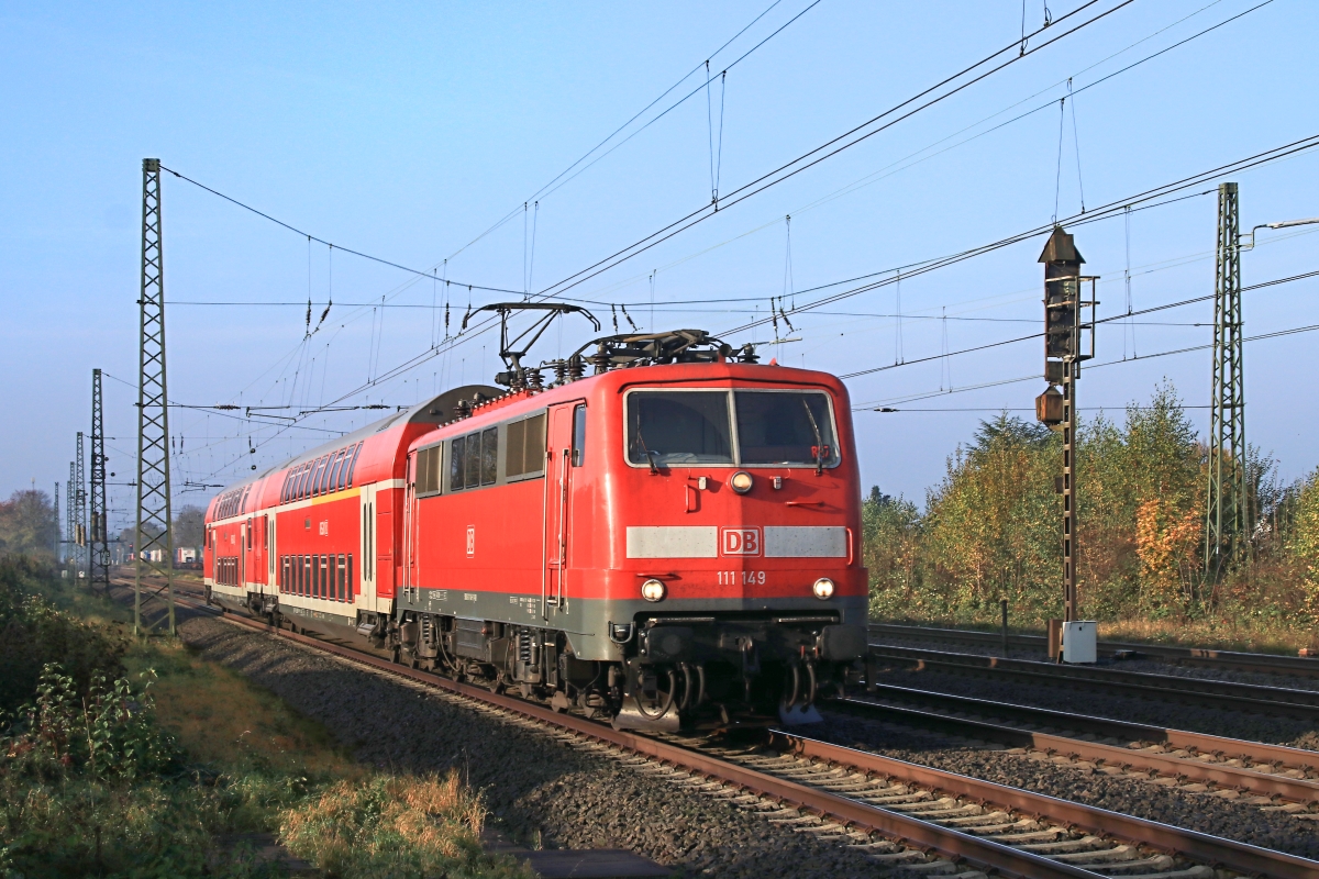 111 149-1 (NVR: 9180 6 111 149-1 D-DB) war hier am 19.10.2017 bei Vennebeck mit dem RE78 Bielefeld/Nienburg