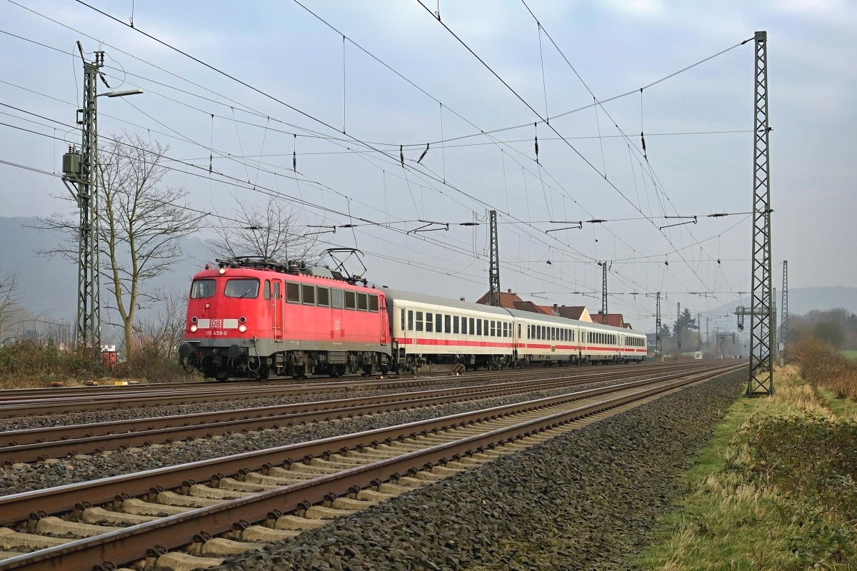 Dto. 115 459-0 mit 4x IC-Wagen am 27.01.2018 bei Vennebeck (HVBK) Rtg.
