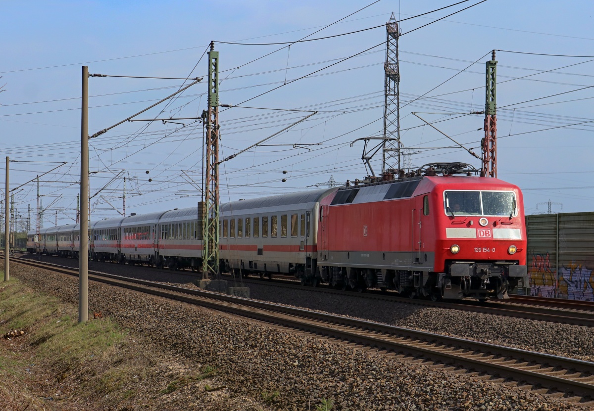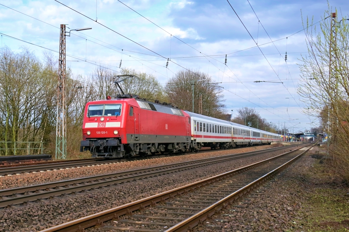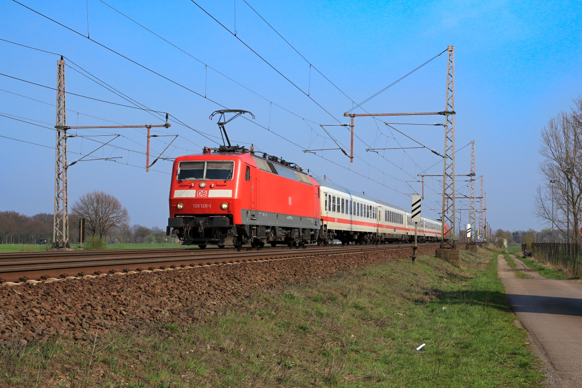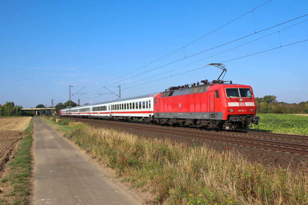 Dto. 120 144-1 am Zugende mit Sandwich IC und der führenden 120