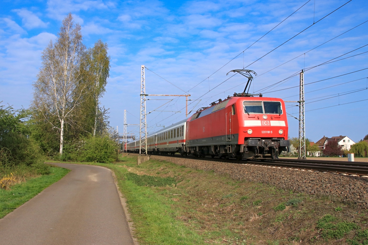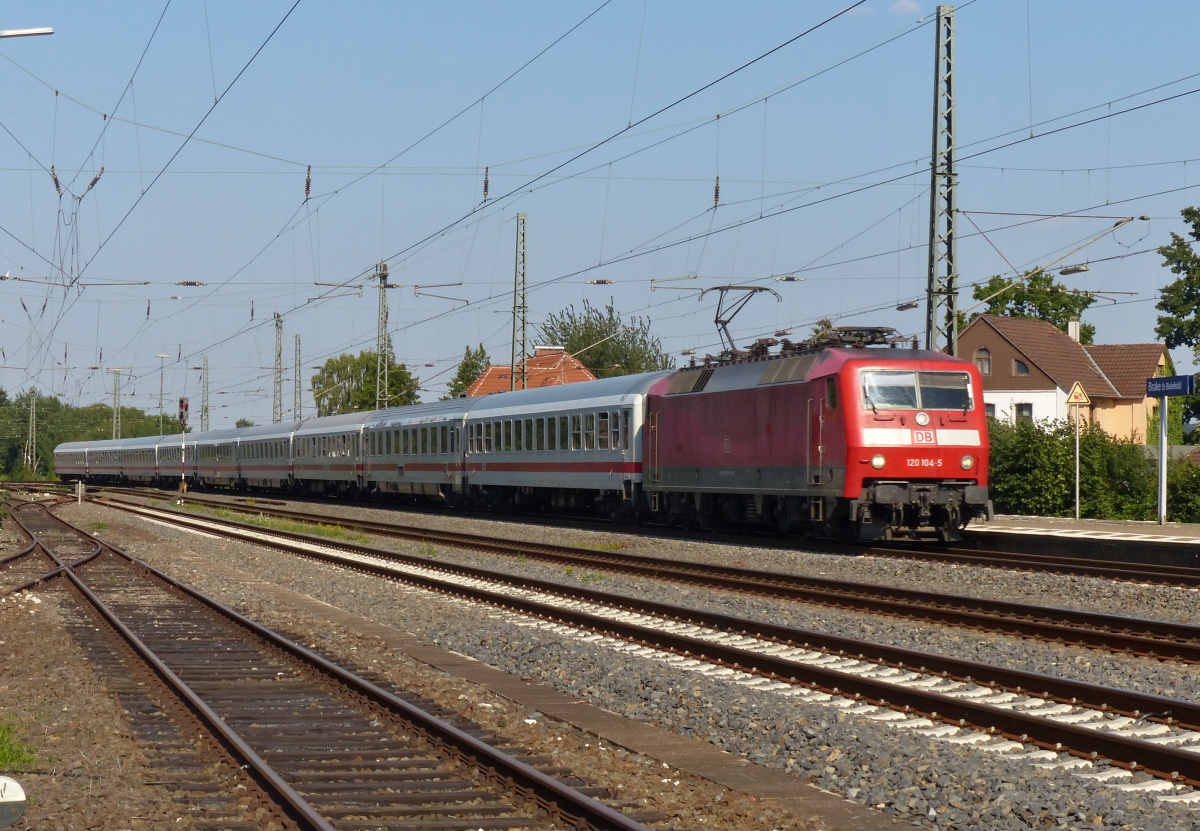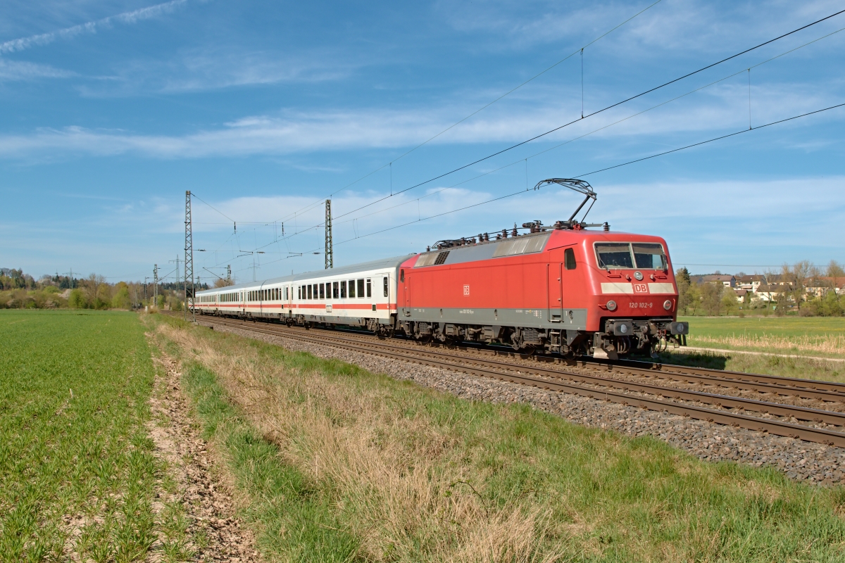 Dto. 120 144-1 am Zugende mit Sandwich IC und der führenden 120