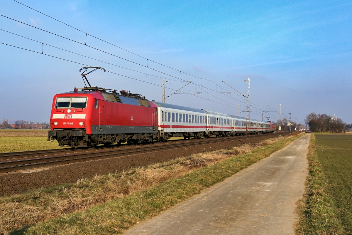 Dto. 120 108-6 am 05.03.2018. Die Lok war hier bei Vennebeck (HVBK) als Schublok mit einem IC Rtg. Westen/Löhne