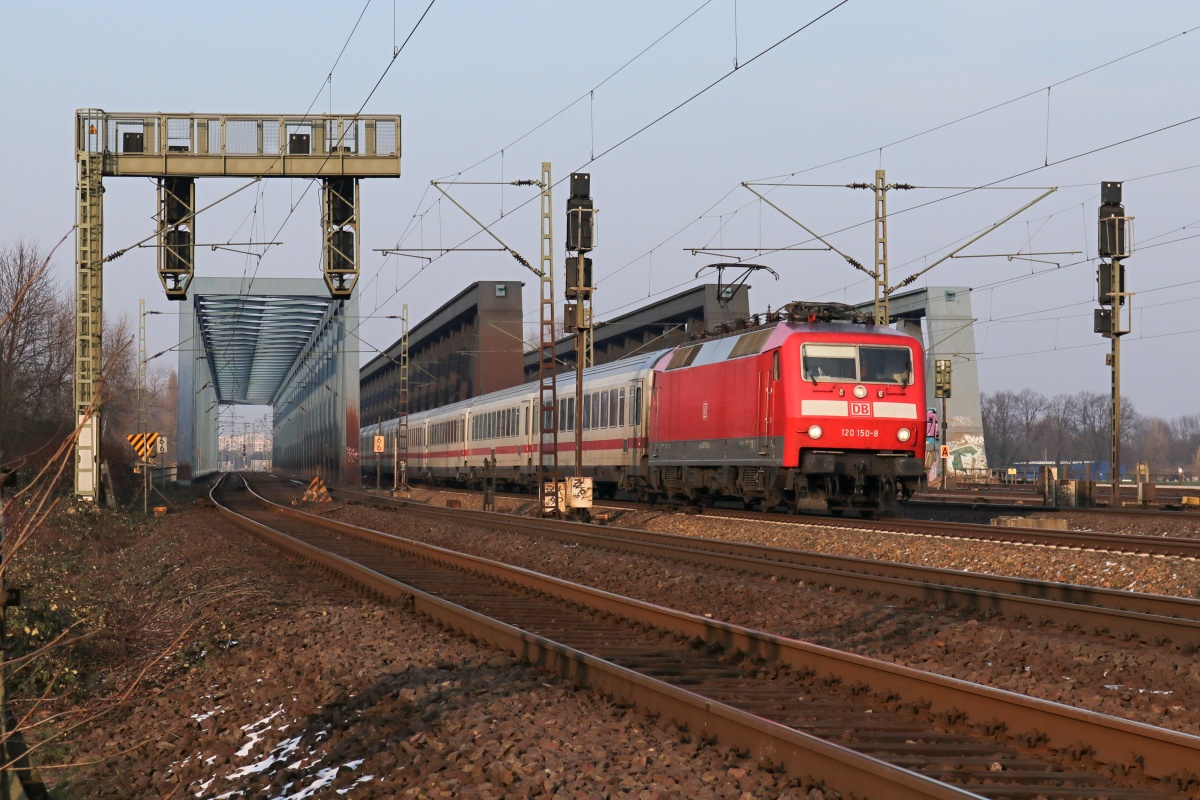 120 150-8 passierte hier am 08.02.2018 die Süderelbebrücken mit einem IC