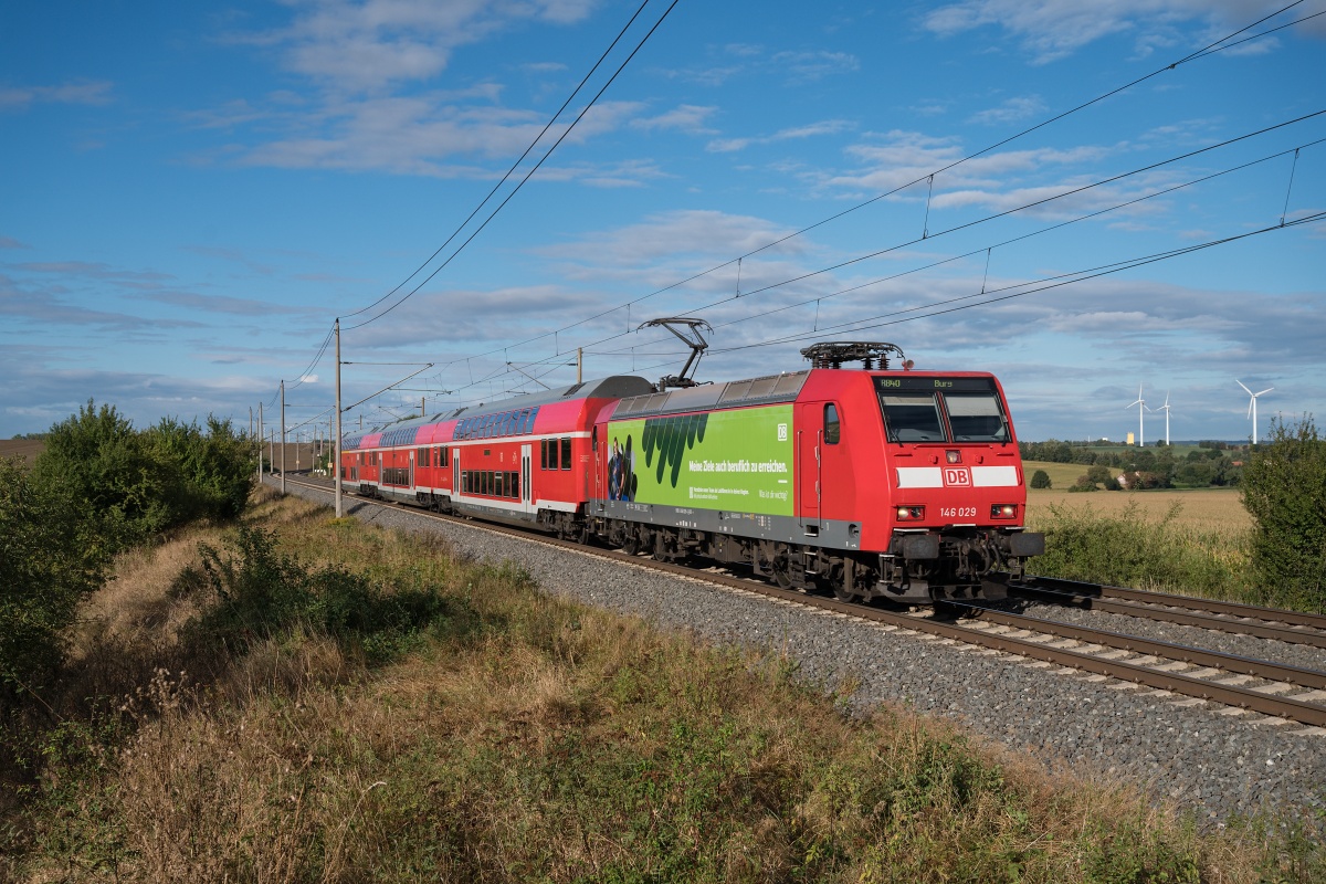 Dto. 146 015-3 am 03.10.2025. Hier zog die Lok den RB40 (HBS)/LBU) die