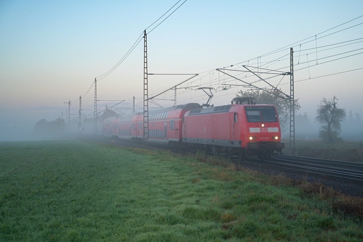 Dto. 146 012-0 früh morgens am 20.03.2025 im aktuellem Betätigungsfeld als RB40