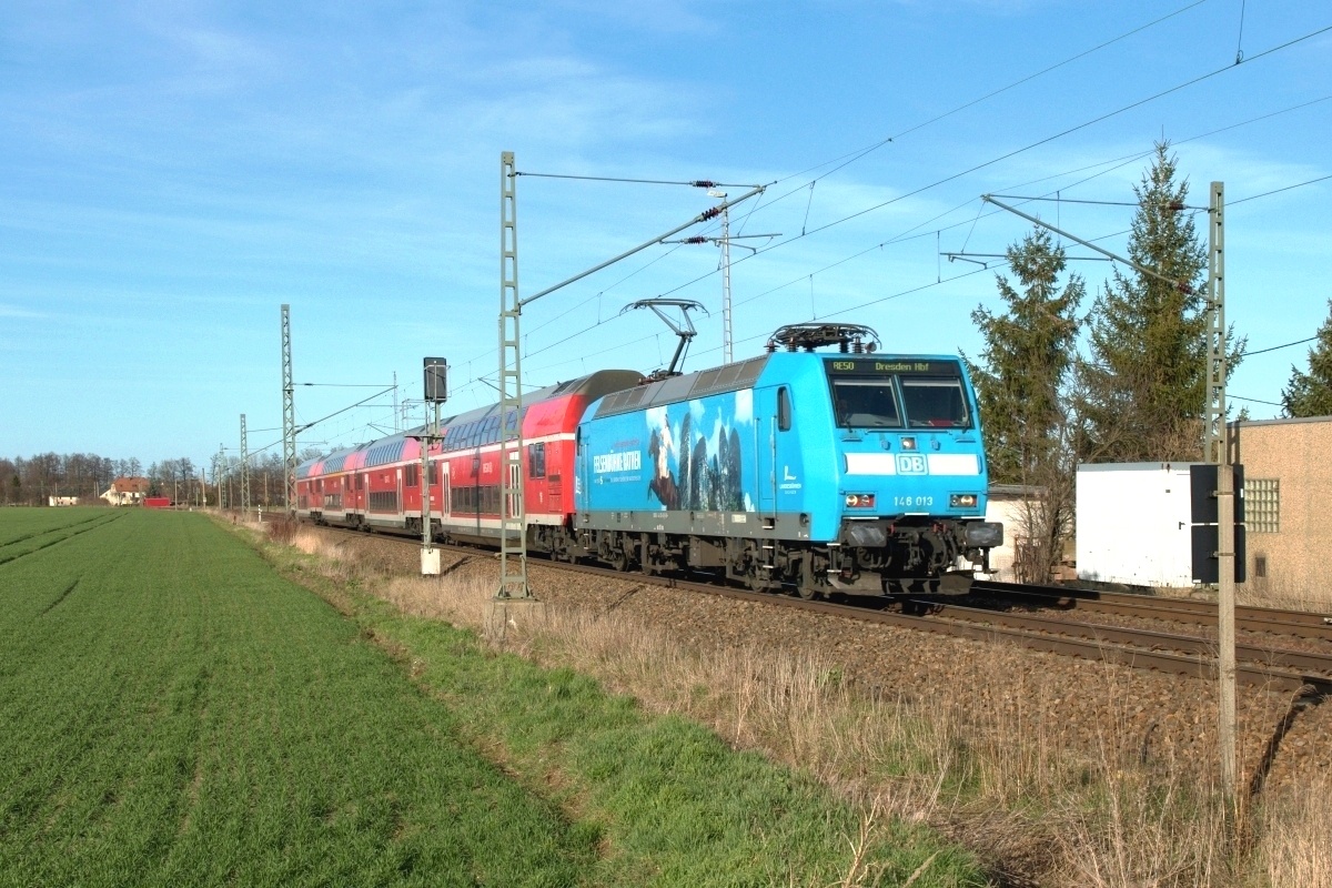 Dto. 146 013-8 am 14.03.2019. Hier war die Lok bei Böhla (Gemeinde