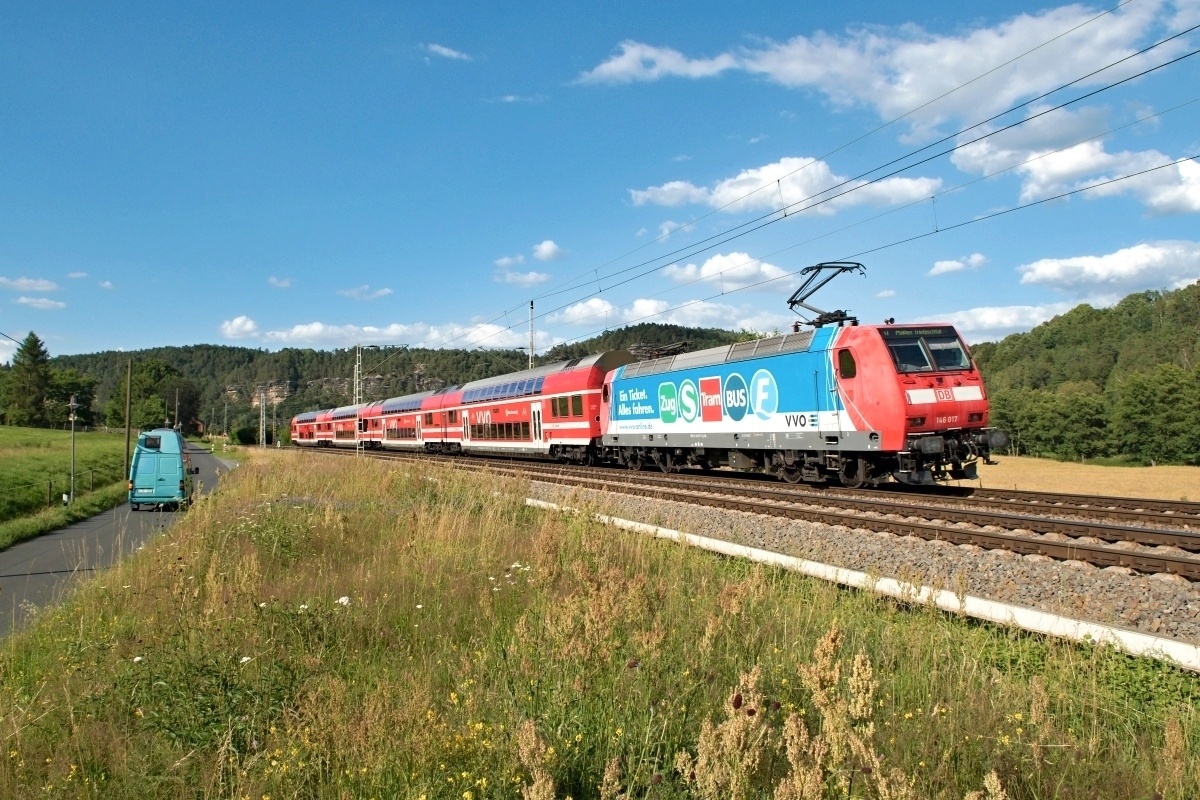 Hier war die Lok mit den S1-Dostos nach Krippen unterwegs...