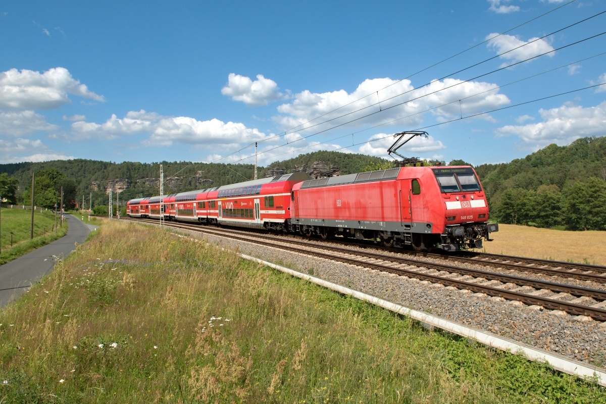 Dto. 146 025-2 am 06.07.2020 auch schiebend bei Kurort Rathen mit der S1