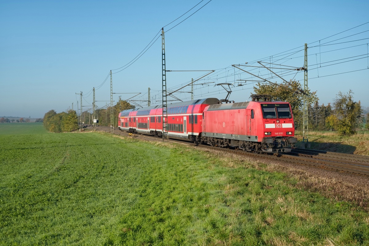 Dto. 146 031-0 morgens am 25.10.2024 um 10:03 Uhr bei Dreileben-Drackenstedt