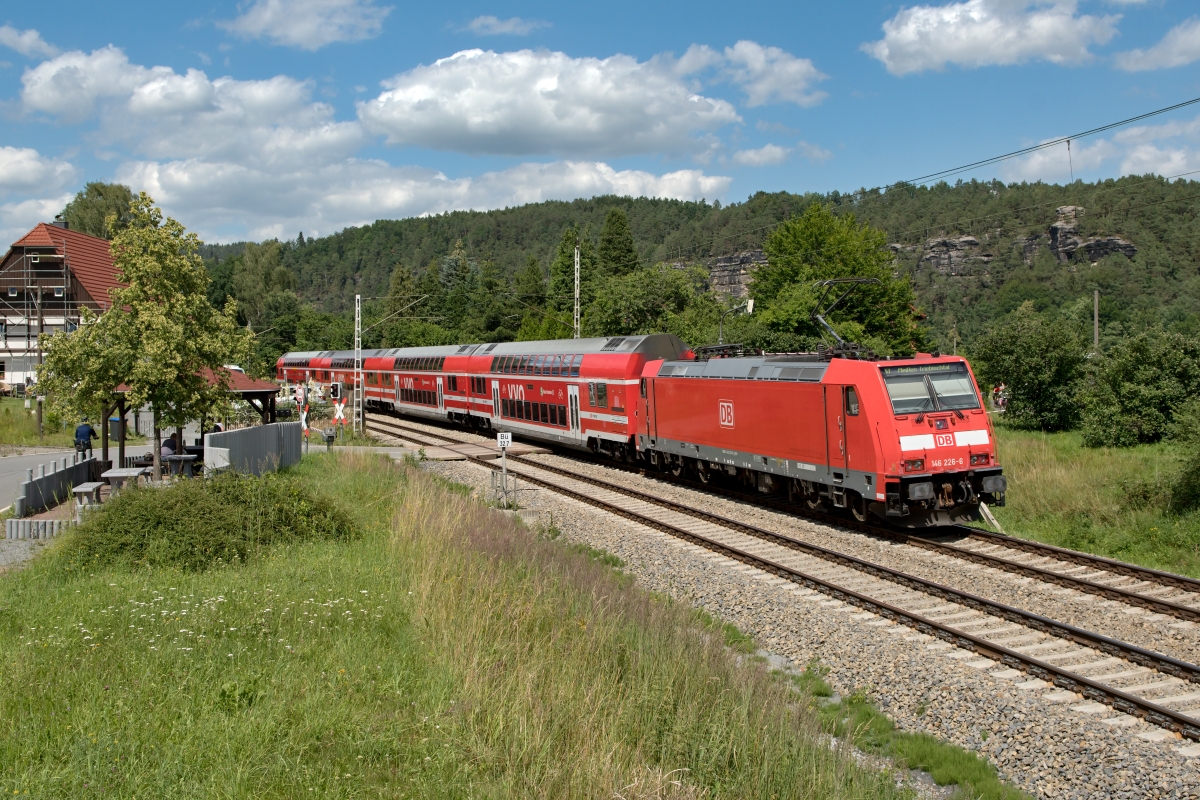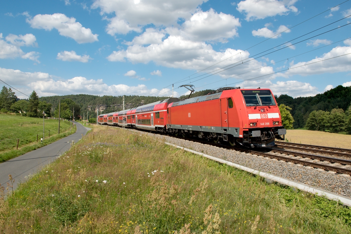 Dto. 146 246-4 am 25.08.2017. Hier passierte die Lok Himmelstadt mit dem