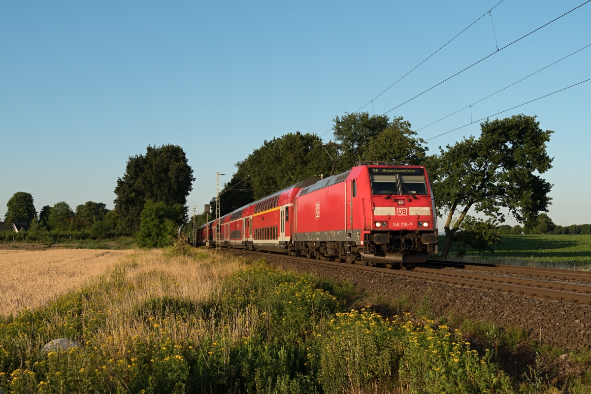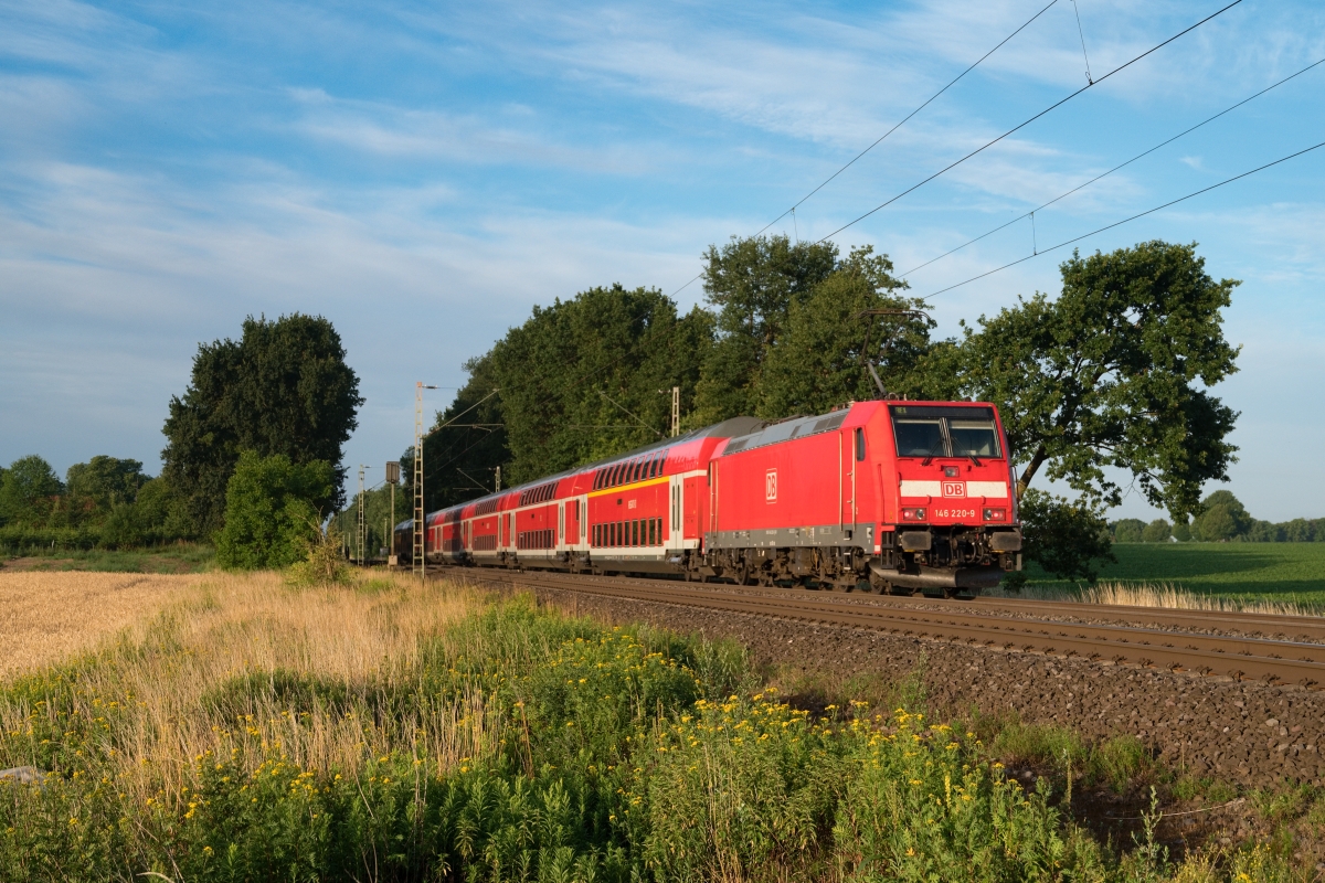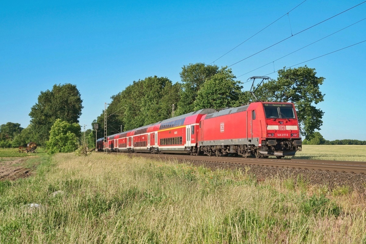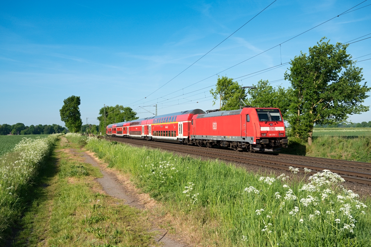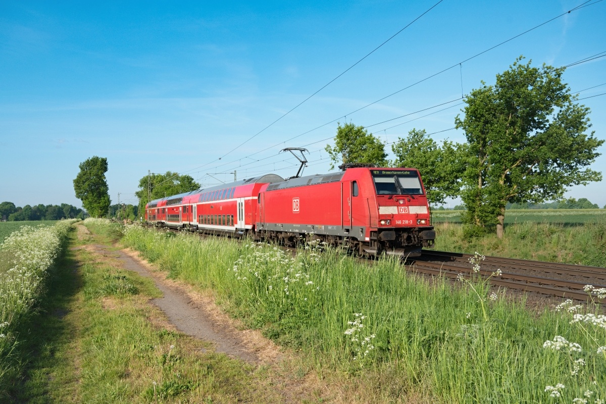 Dto. 146 218-3 am 18.05.2022 bei Twistringen (HT) mit dem RE9 von Osnabrück