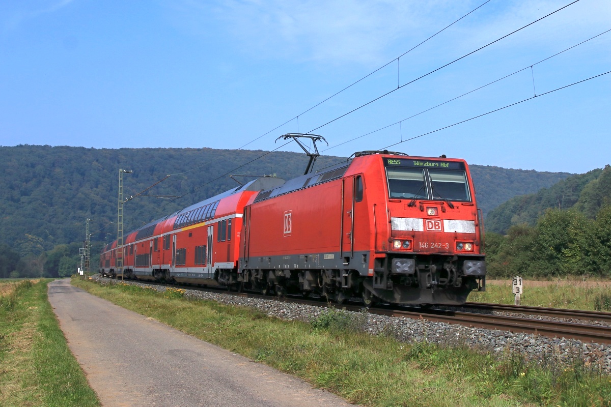 146 242-3 (NVR: 91 80 6146 242-3 D-DB) am 22.09.2017 Harrbach mit dem RE55 nach