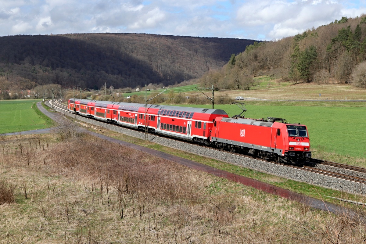 Dto. 146 244-9 am 05.04.2018. Hier war die Lok bei Harrbach mit dem RE55
