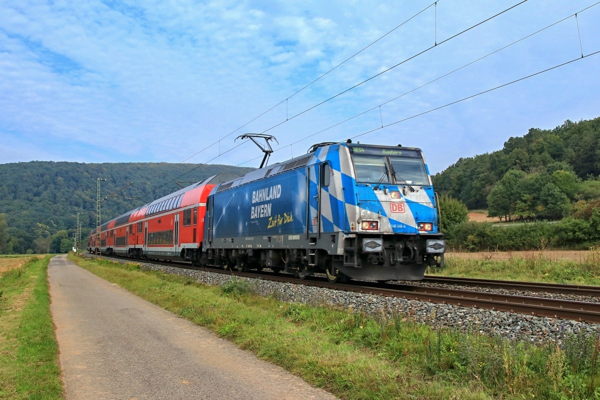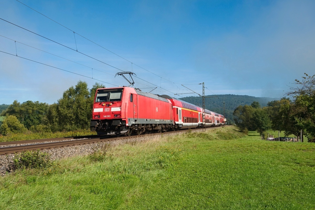 Dto. 146 246-4 am 22.09.2018. Hier passierte die Lok Harrbach mit dem RE54