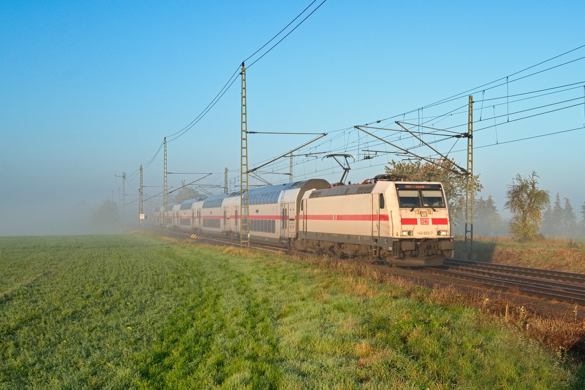 Dto. 146 565-7 früh morgens am 25.10.2024 bei Dreileben-Drackenstedt