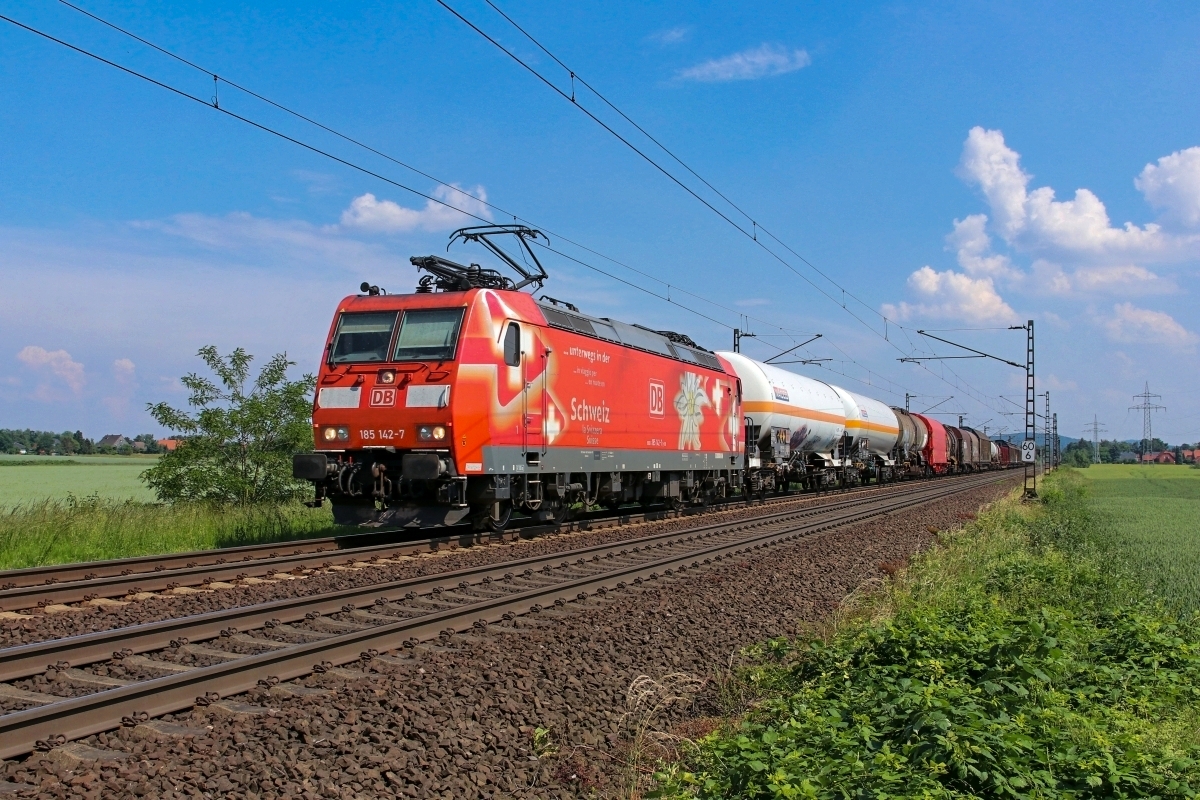 Dto. 185 142-7 am 27.06.2018. Hier war die Lok bei Dankersen mit