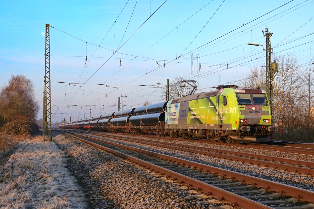 Dto. 185 152-6 am 06.03.2018 im Morgenlicht. Hier passierte die Lok