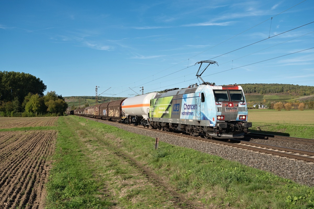 Dto. 185 152-6 am 06.10.2022 bei Retzbach (NREZ) mit einem EZ Rtg.